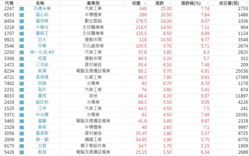 2025-0723日新高爆量上漲股 2025-07-23 股狗網小編 選股條件 發表留言 利用股狗選股的選股條件可以【挑選突破20日新高,爆量上漲起漲點股票】 1.股狗選股 https://www.stockdog.com.tw 2.選股條件: a.收盤價創20日新高 b.當日漲幅 > 2% C.成交量大於5日均量2倍 免責宣言 本網站文章所提供資訊僅供參考,並無任何推介買賣之意,投資人應自行承擔交易風險。 分享此文: 分享到 X(在新視窗中開啟) X 分享到 Facebook(在新視窗中開啟) Facebook 喜歡 正在載入...
