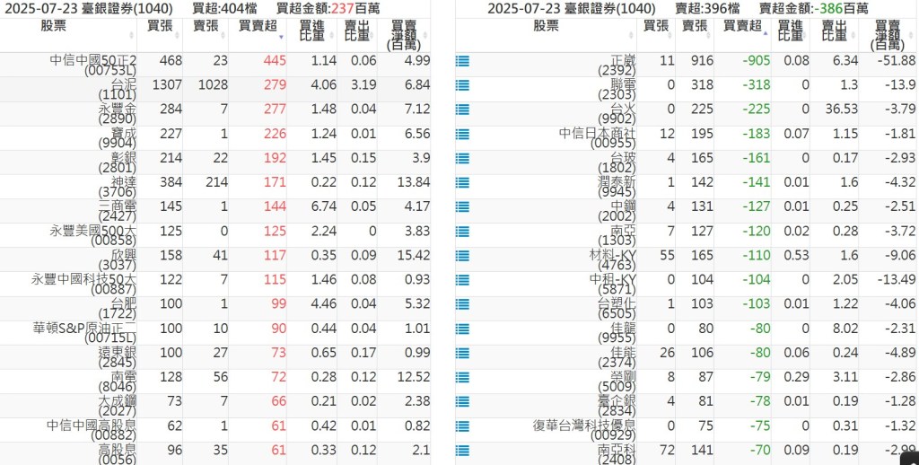 2025-0723關鍵券商買賣超 2025-07-23 股狗網小編 籌碼面每日資訊 發表留言 關鍵券商買賣超: 臺銀證券(1040): 台灣摩根士丹利(1470): 凱基台北(9268): 凱基信義(9216): 元大土城永寧(9875): 康和永和(845B) : 富邦建國(9658): 免責宣言 本網站文章所提供資訊僅供參考,並無任何推介買賣之意,投資人應自行承擔交易風險。 分享此文: 按一下即可分享至 X(在新視窗中開啟) X 按一下以分享至 Facebook(在新視窗中開啟) Facebook 喜歡 正在載入...