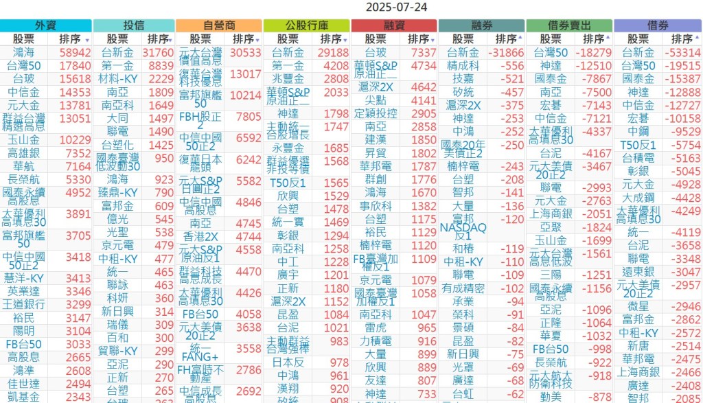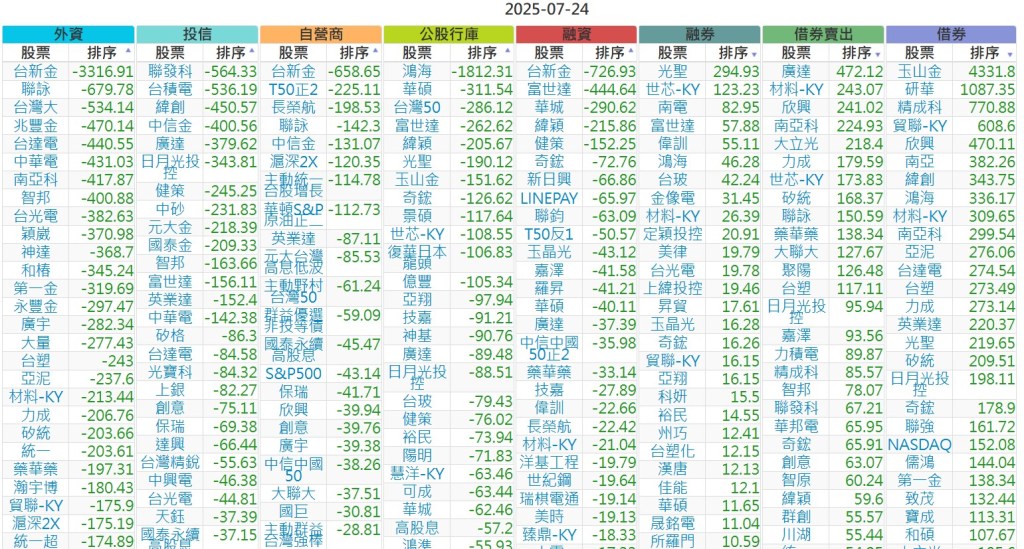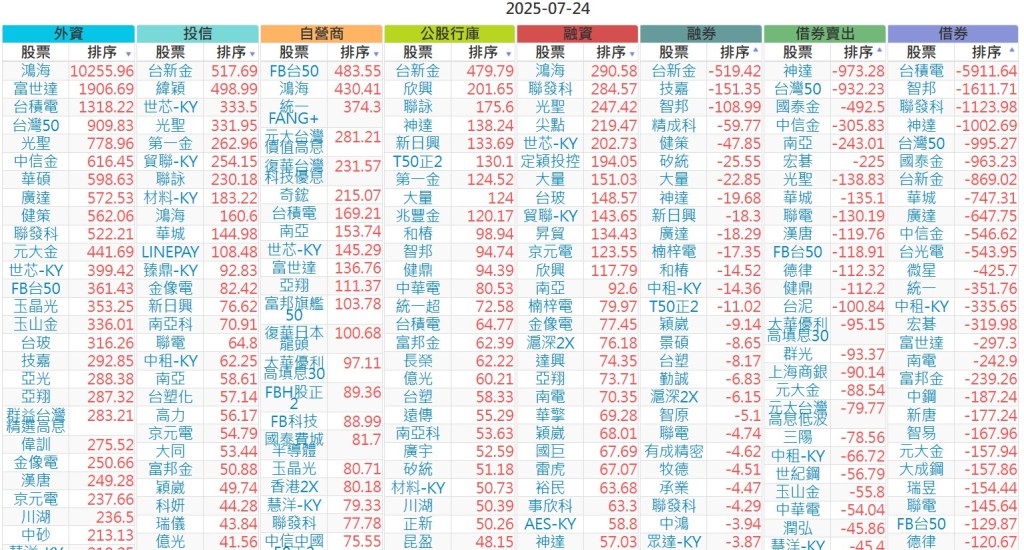 2025-0724【外資、投信】買賣超個股 2025-07-24 股狗網小編 投資誌-大盤 發表留言 上市:【外資、投信】買超(依金額) (單位:百萬) 上市:【外資、投信】賣超(依金額) (單位:百萬) 上市:【外資、投信】買超(依張數) (單位:張數) 上市:【外資、投信】賣超(依張數) (單位:張數) 免責宣言 本網站文章所提供資訊僅供參考,並無任何推介買賣之意,投資人應自行承擔交易風險。 分享此文: 按一下即可分享至 X(在新視窗中開啟) X 按一下以分享至 Facebook(在新視窗中開啟) Facebook 喜歡 正在載入...