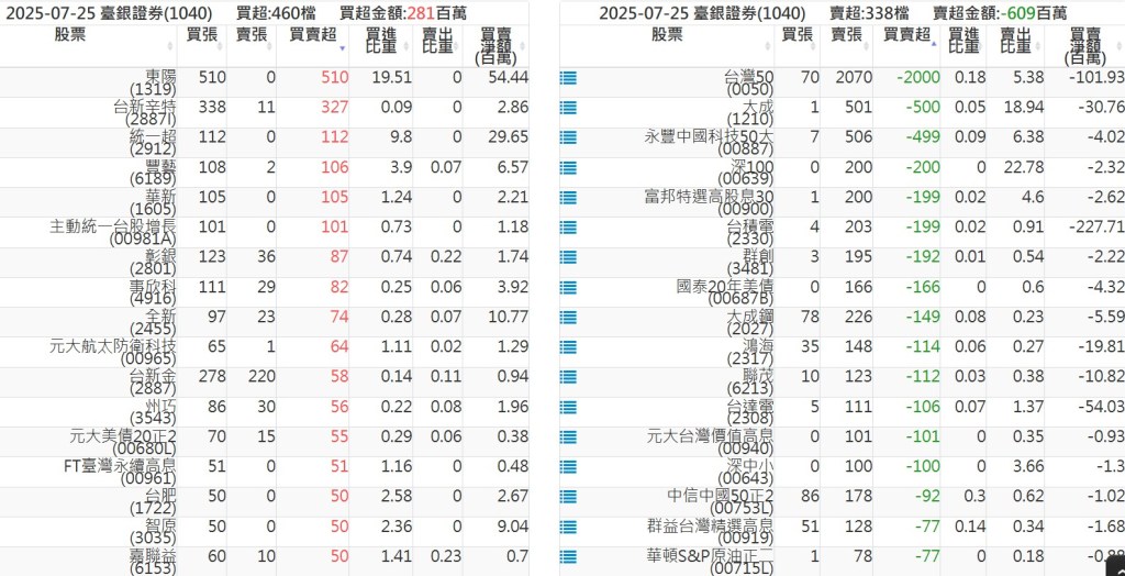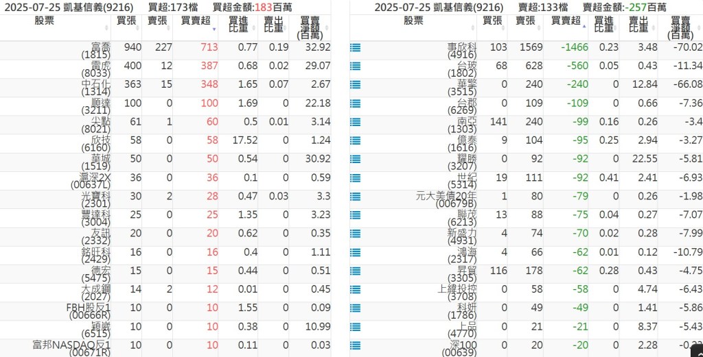 2025-0725關鍵券商買賣超 2025-07-25 股狗網小編 籌碼面每日資訊 發表留言 關鍵券商買賣超: 臺銀證券(1040): 台灣摩根士丹利(1470): 凱基台北(9268): 凱基信義(9216): 元大土城永寧(9875): 康和永和(845B) : 富邦建國(9658): 免責宣言 本網站文章所提供資訊僅供參考,並無任何推介買賣之意,投資人應自行承擔交易風險。 分享此文: 按一下即可分享至 X(在新視窗中開啟) X 按一下以分享至 Facebook(在新視窗中開啟) Facebook 喜歡 正在載入...