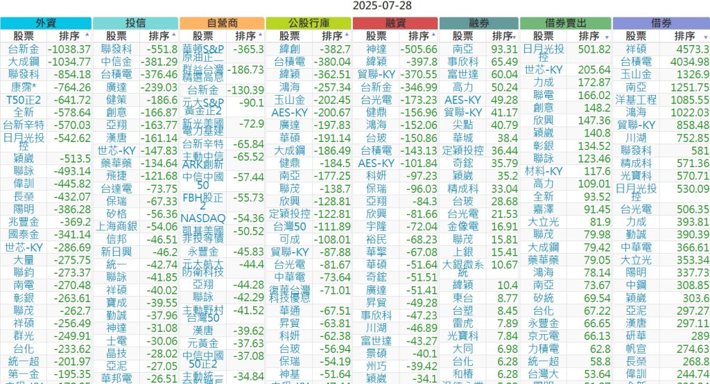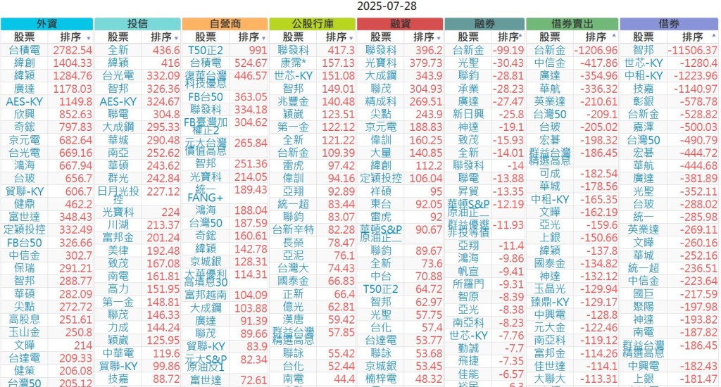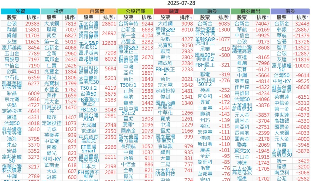 2025-0728【外資、投信】買賣超個股 2025-07-28 股狗網小編 投資誌-大盤 發表留言 上市:【外資、投信】買超(依金額) (單位:百萬) 上市:【外資、投信】賣超(依金額) (單位:百萬) 上市:【外資、投信】買超(依張數) (單位:張數) 上市:【外資、投信】賣超(依張數) (單位:張數) 免責宣言 本網站文章所提供資訊僅供參考,並無任何推介買賣之意,投資人應自行承擔交易風險。 分享此文: 按一下即可分享至 X(在新視窗中開啟) X 按一下以分享至 Facebook(在新視窗中開啟) Facebook 喜歡 正在載入...