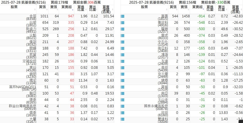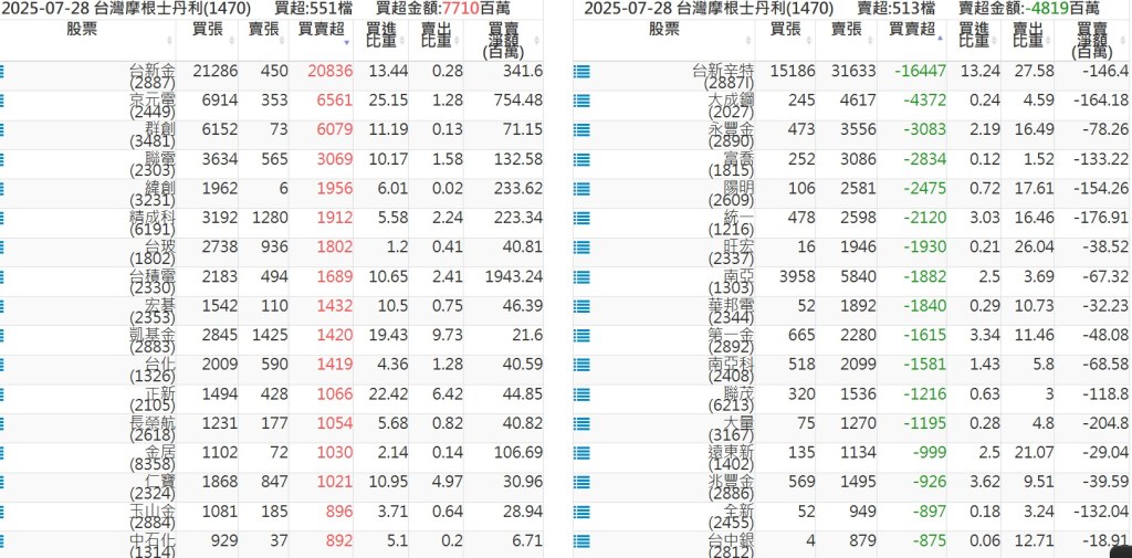 2025-0728關鍵券商買賣超 2025-07-28 股狗網小編 籌碼面每日資訊 發表留言 關鍵券商買賣超: 臺銀證券(1040): 台灣摩根士丹利(1470): 凱基台北(9268): 凱基信義(9216): 元大土城永寧(9875): 康和永和(845B) : 富邦建國(9658): 免責宣言 本網站文章所提供資訊僅供參考,並無任何推介買賣之意,投資人應自行承擔交易風險。 分享此文: 按一下即可分享至 X(在新視窗中開啟) X 按一下以分享至 Facebook(在新視窗中開啟) Facebook 喜歡 正在載入...