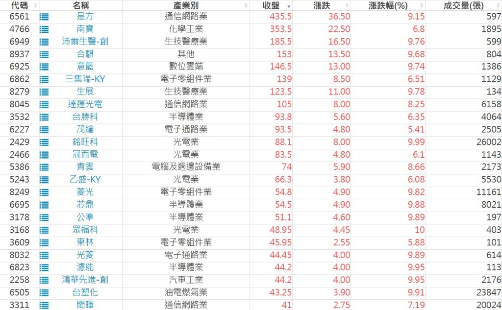 2025-0730日新高爆量上漲股 2025-07-30 股狗網小編 選股條件 發表留言 利用股狗選股的選股條件可以【挑選突破20日新高,爆量上漲起漲點股票】 1.股狗選股 https://www.stockdog.com.tw 2.選股條件: a.收盤價創20日新高 b.當日漲幅 > 2% C.成交量大於5日均量2倍 免責宣言 本網站文章所提供資訊僅供參考,並無任何推介買賣之意,投資人應自行承擔交易風險。 分享此文: 按一下即可分享至 X(在新視窗中開啟) X 按一下以分享至 Facebook(在新視窗中開啟) Facebook 喜歡 正在載入...