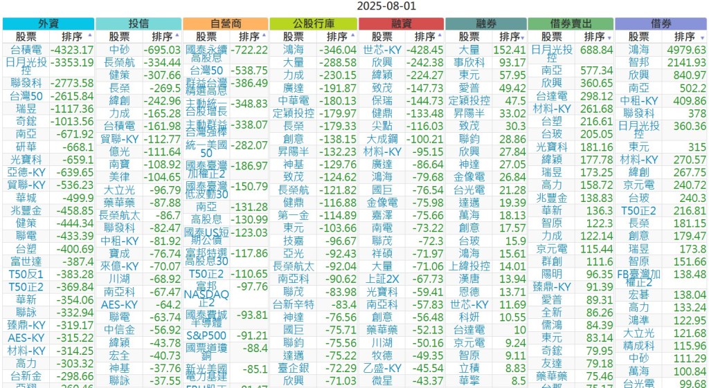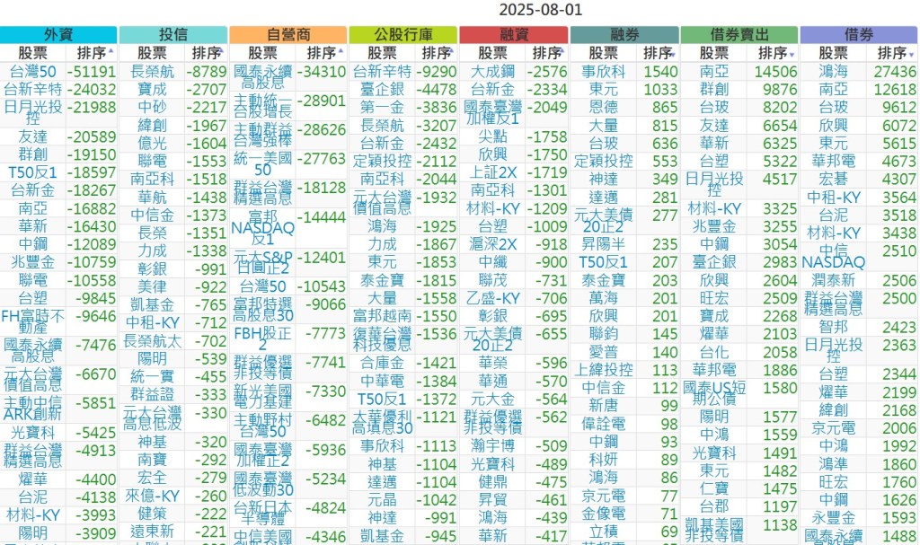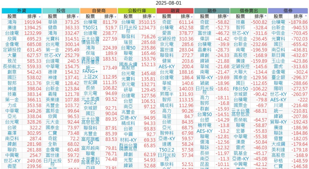 2025-0801【外資、投信】買賣超個股 2025-08-01 股狗網小編 投資誌-大盤 發表留言 上市:【外資、投信】買超(依金額) (單位:百萬) 上市:【外資、投信】賣超(依金額) (單位:百萬) 上市:【外資、投信】買超(依張數) (單位:張數) 上市:【外資、投信】賣超(依張數) (單位:張數) 免責宣言 本網站文章所提供資訊僅供參考,並無任何推介買賣之意,投資人應自行承擔交易風險。 分享此文: 按一下即可分享至 X(在新視窗中開啟) X 按一下以分享至 Facebook(在新視窗中開啟) Facebook 喜歡 正在載入...