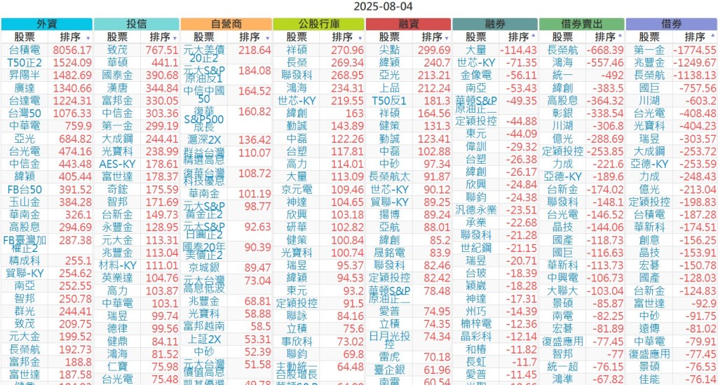 2025-0804【外資、投信】買賣超個股 2025-08-04 股狗網小編 投資誌-大盤 發表留言 上市:【外資、投信】買超(依金額) (單位:百萬) 上市:【外資、投信】賣超(依金額) (單位:百萬) 上市:【外資、投信】買超(依張數) (單位:張數) 上市:【外資、投信】賣超(依張數) (單位:張數) 免責宣言 本網站文章所提供資訊僅供參考,並無任何推介買賣之意,投資人應自行承擔交易風險。 分享此文: 按一下即可分享至 X(在新視窗中開啟) X 按一下以分享至 Facebook(在新視窗中開啟) Facebook 喜歡 正在載入...