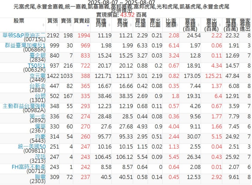 2025-0807主力買賣超個股 2025-08-07 股狗網小編 籌碼面每日資訊 發表留言 可參考下文 『如何查詢當沖、隔日沖分公司券商買賣』 主力當沖券商: 『元富虎尾』,『永豐金嘉義』,『統一嘉義』,『凱基嘉義』,『富邦嘉義』,『富邦虎尾』,『光和虎尾』,『凱基虎尾』,『永豐金虎尾』。 『當沖標的』 『買超股票』 『賣超股票』 免責宣言 本網站文章所提供資訊僅供參考,並無任何推介買賣之意,投資人應自行承擔交易風險。 分享此文: 按一下即可分享至 X(在新視窗中開啟) X 按一下以分享至 Facebook(在新視窗中開啟) Facebook 喜歡 正在載入...