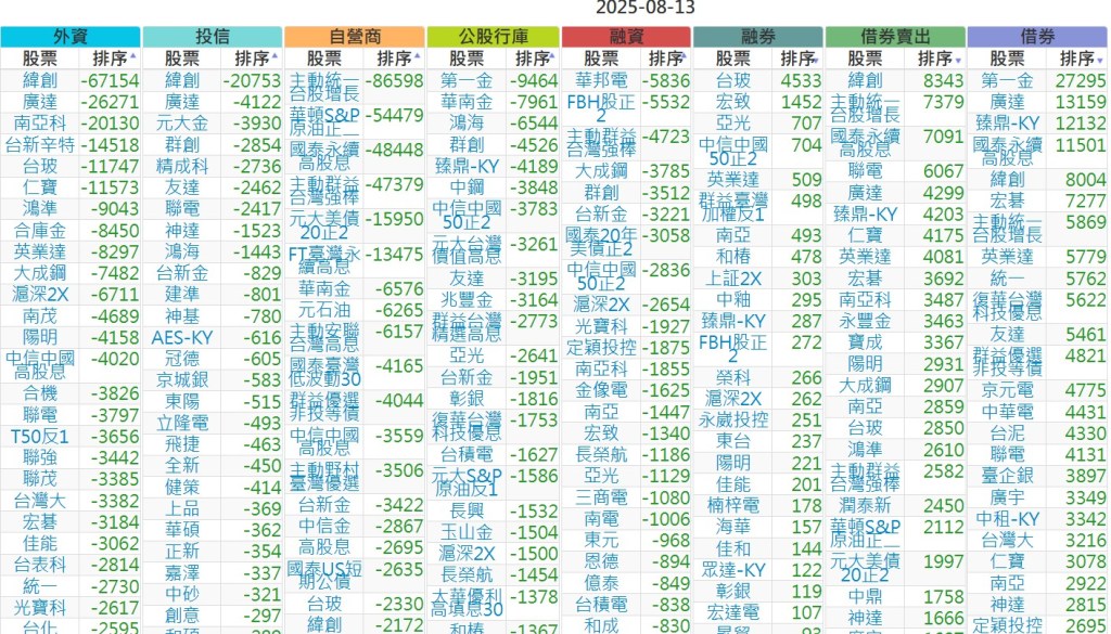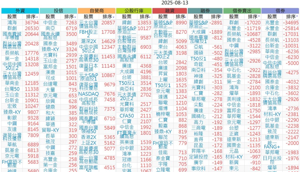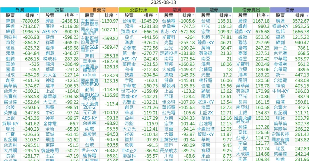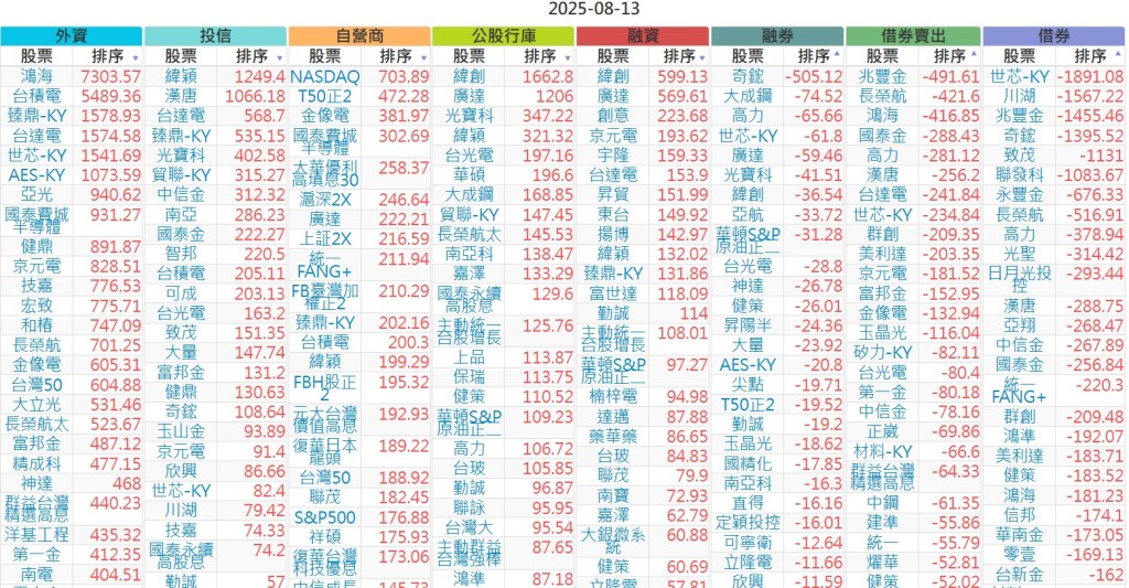 2025-0813【外資、投信】買賣超個股 2025-08-13 股狗網小編 投資誌-大盤 發表留言 上市:【外資、投信】買超(依金額) (單位:百萬) 上市:【外資、投信】賣超(依金額) (單位:百萬) 上市:【外資、投信】買超(依張數) (單位:張數) 上市:【外資、投信】賣超(依張數) (單位:張數) 免責宣言 本網站文章所提供資訊僅供參考,並無任何推介買賣之意,投資人應自行承擔交易風險。 分享此文: 按一下即可分享至 X(在新視窗中開啟) X 按一下以分享至 Facebook(在新視窗中開啟) Facebook 喜歡 正在載入...