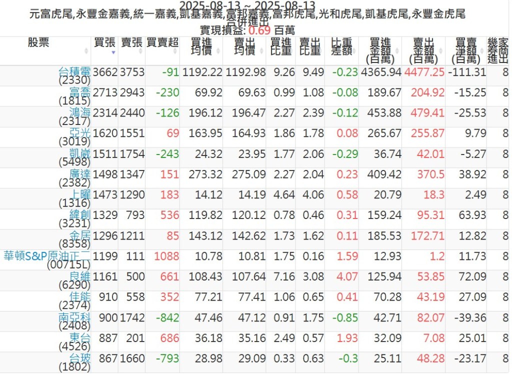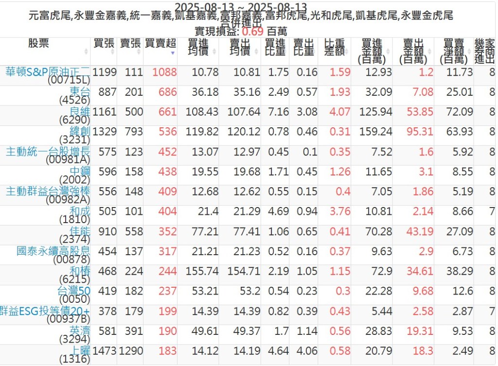 2025-0813主力買賣超個股 2025-08-13 股狗網小編 籌碼面每日資訊 發表留言 可參考下文 『如何查詢當沖、隔日沖分公司券商買賣』 主力當沖券商: 『元富虎尾』,『永豐金嘉義』,『統一嘉義』,『凱基嘉義』,『富邦嘉義』,『富邦虎尾』,『光和虎尾』,『凱基虎尾』,『永豐金虎尾』。 『當沖標的』 『買超股票』 『賣超股票』 免責宣言 本網站文章所提供資訊僅供參考,並無任何推介買賣之意,投資人應自行承擔交易風險。 分享此文: 按一下即可分享至 X(在新視窗中開啟) X 按一下以分享至 Facebook(在新視窗中開啟) Facebook 喜歡 正在載入...