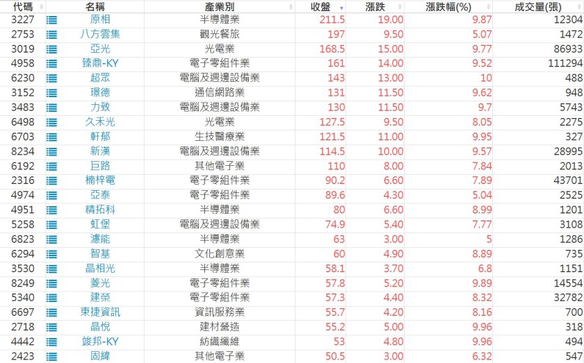 2025-0813日新高爆量上漲股 2025-08-13 股狗網小編 選股條件 發表留言 利用股狗選股的選股條件可以【挑選突破20日新高,爆量上漲起漲點股票】 1.股狗選股 https://www.stockdog.com.tw 2.選股條件: a.收盤價創20日新高 b.當日漲幅 > 2% C.成交量大於5日均量2倍 免責宣言 本網站文章所提供資訊僅供參考,並無任何推介買賣之意,投資人應自行承擔交易風險。 分享此文: 按一下即可分享至 X(在新視窗中開啟) X 按一下以分享至 Facebook(在新視窗中開啟) Facebook 喜歡 正在載入...
