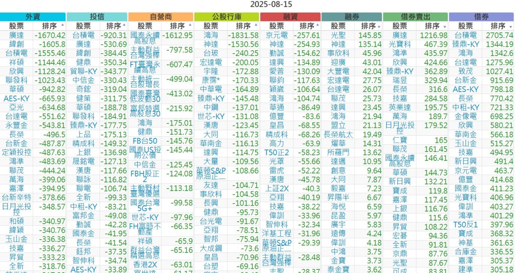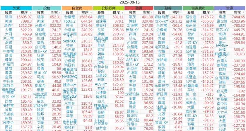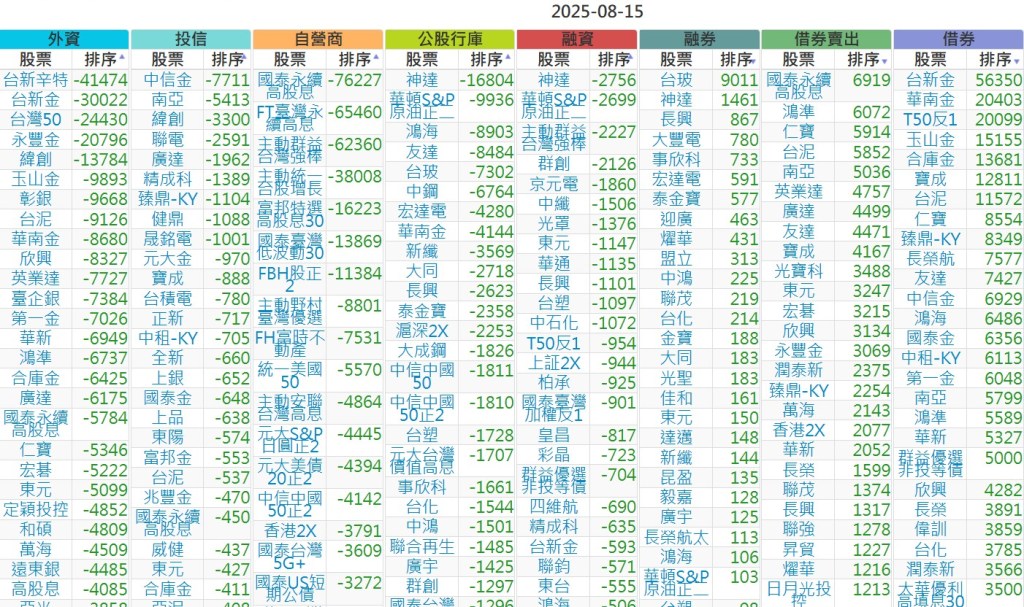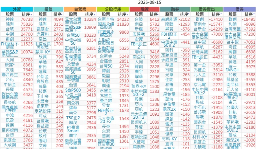 2025-0815【外資、投信】買賣超個股 2025-08-15 股狗網小編 投資誌-大盤 發表留言 上市:【外資、投信】買超(依金額) (單位:百萬) 上市:【外資、投信】賣超(依金額) (單位:百萬) 上市:【外資、投信】買超(依張數) (單位:張數) 上市:【外資、投信】賣超(依張數) (單位:張數) 免責宣言 本網站文章所提供資訊僅供參考,並無任何推介買賣之意,投資人應自行承擔交易風險。 分享此文: 按一下即可分享至 X(在新視窗中開啟) X 按一下以分享至 Facebook(在新視窗中開啟) Facebook 喜歡 正在載入...