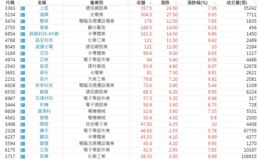2025-0815日新高爆量上漲股 2025-08-15 股狗網小編 選股條件 發表留言 利用股狗選股的選股條件可以【挑選突破20日新高,爆量上漲起漲點股票】 1.股狗選股 https://www.stockdog.com.tw 2.選股條件: a.收盤價創20日新高 b.當日漲幅 > 2% C.成交量大於5日均量2倍 免責宣言 本網站文章所提供資訊僅供參考,並無任何推介買賣之意,投資人應自行承擔交易風險。 分享此文: 按一下即可分享至 X(在新視窗中開啟) X 按一下以分享至 Facebook(在新視窗中開啟) Facebook 喜歡 正在載入...