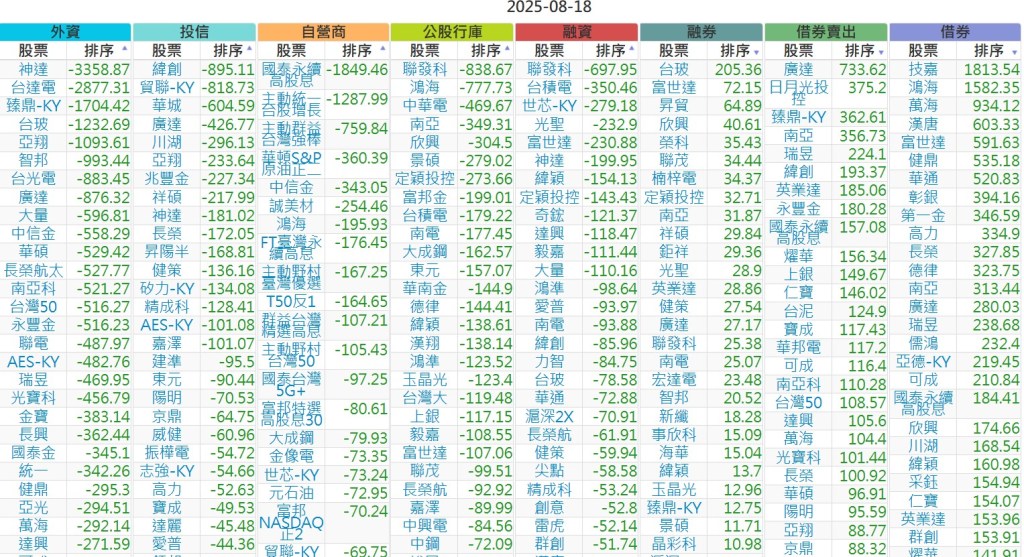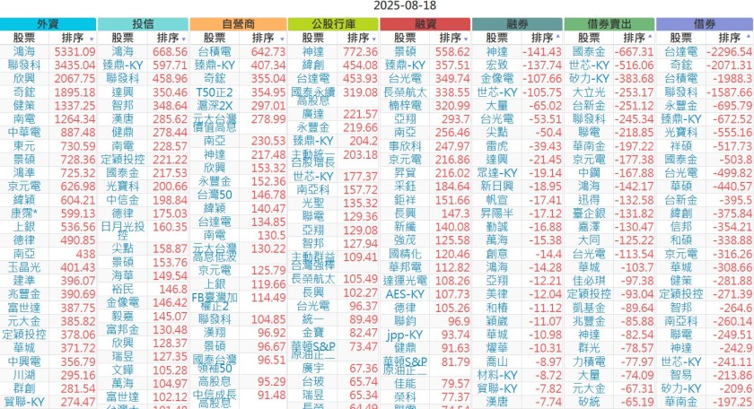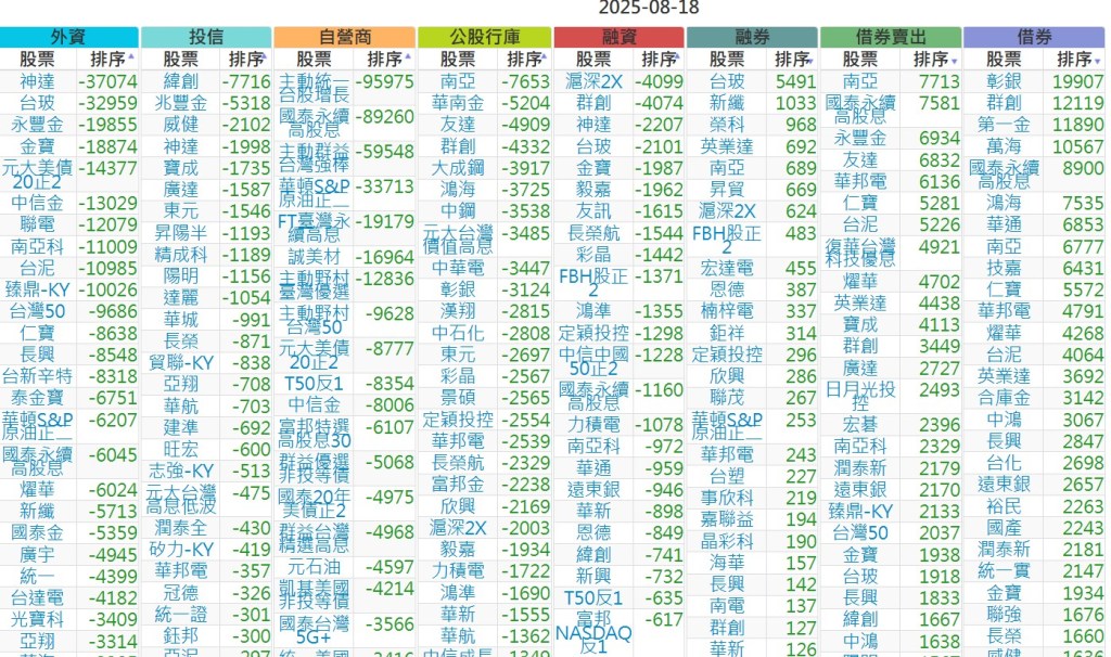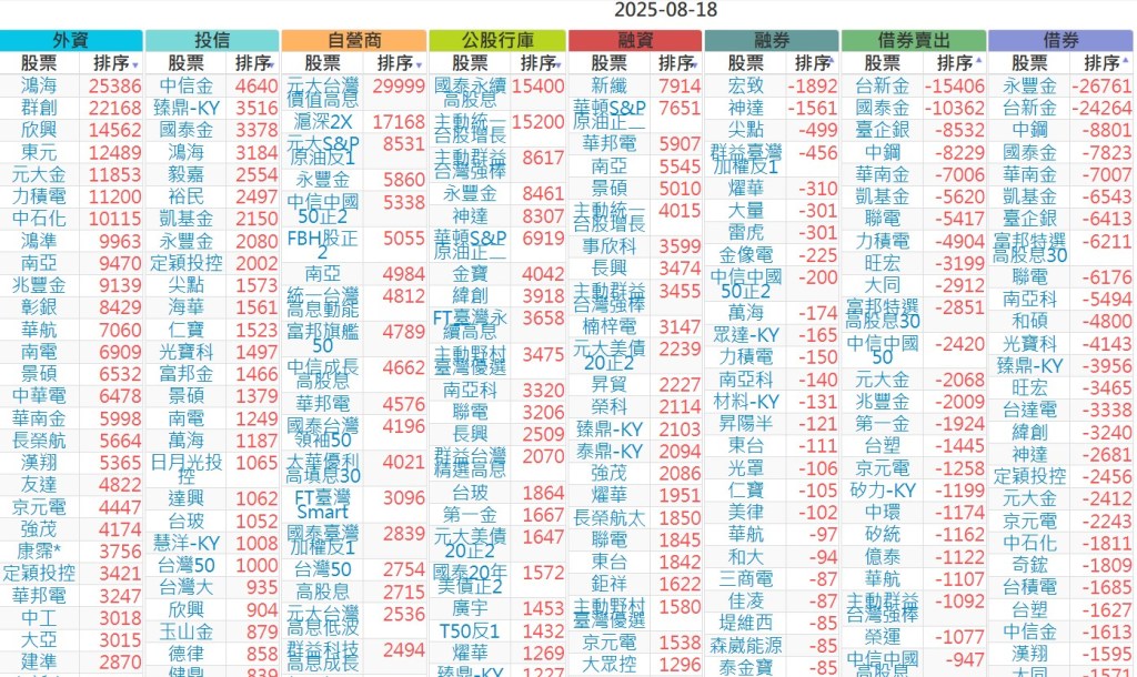 2025-0818【外資、投信】買賣超個股 2025-08-18 股狗網小編 投資誌-大盤 發表留言 上市:【外資、投信】買超(依金額) (單位:百萬) 上市:【外資、投信】賣超(依金額) (單位:百萬) 上市:【外資、投信】買超(依張數) (單位:張數) 上市:【外資、投信】賣超(依張數) (單位:張數) 免責宣言 本網站文章所提供資訊僅供參考,並無任何推介買賣之意,投資人應自行承擔交易風險。 分享此文: 按一下即可分享至 X(在新視窗中開啟) X 按一下以分享至 Facebook(在新視窗中開啟) Facebook 喜歡 正在載入...
