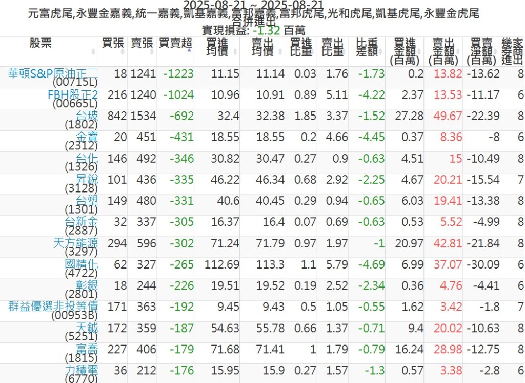 2025-0821主力買賣超個股 2025-08-21 股狗網小編 籌碼面每日資訊 發表留言 可參考下文 『如何查詢當沖、隔日沖分公司券商買賣』 主力當沖券商: 『元富虎尾』,『永豐金嘉義』,『統一嘉義』,『凱基嘉義』,『富邦嘉義』,『富邦虎尾』,『光和虎尾』,『凱基虎尾』,『永豐金虎尾』。 『當沖標的』 『買超股票』 『賣超股票』 免責宣言 本網站文章所提供資訊僅供參考,並無任何推介買賣之意,投資人應自行承擔交易風險。 分享此文: 按一下即可分享至 X(在新視窗中開啟) X 按一下以分享至 Facebook(在新視窗中開啟) Facebook 喜歡 正在載入...