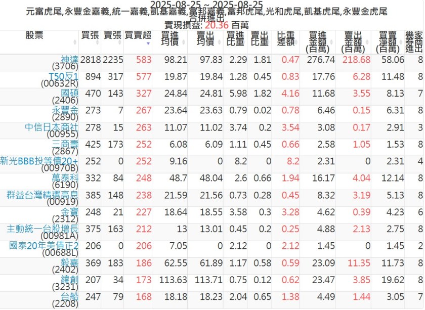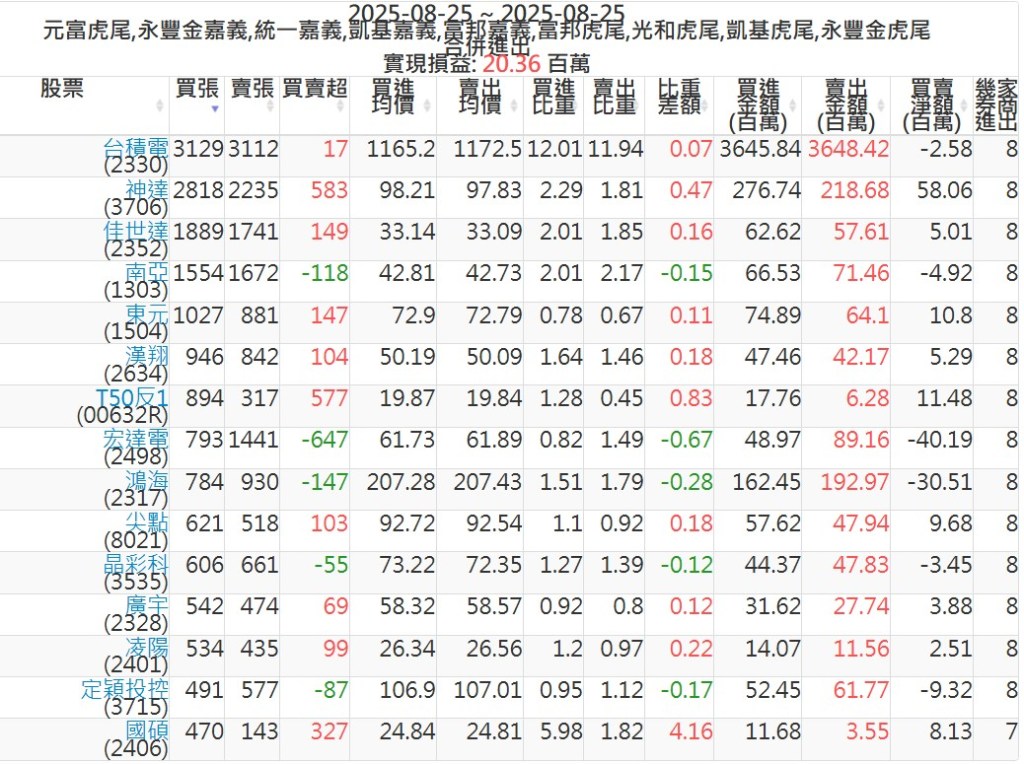 2025-0825主力買賣超個股 2025-08-25 股狗網小編 籌碼面每日資訊 發表留言 可參考下文 『如何查詢當沖、隔日沖分公司券商買賣』 主力當沖券商: 『元富虎尾』,『永豐金嘉義』,『統一嘉義』,『凱基嘉義』,『富邦嘉義』,『富邦虎尾』,『光和虎尾』,『凱基虎尾』,『永豐金虎尾』。 『當沖標的』 『買超股票』 『賣超股票』 免責宣言 本網站文章所提供資訊僅供參考,並無任何推介買賣之意,投資人應自行承擔交易風險。 分享此文: 按一下即可分享至 X(在新視窗中開啟) X 按一下以分享至 Facebook(在新視窗中開啟) Facebook 喜歡 正在載入...