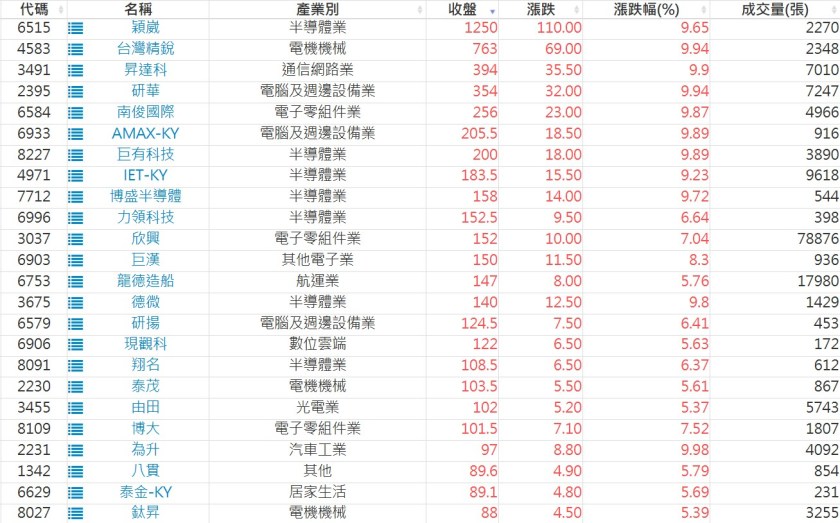 2025-0827日新高爆量上漲股 2025-08-27 股狗網小編 選股條件 發表留言 利用股狗選股的選股條件可以【挑選突破20日新高,爆量上漲起漲點股票】 1.股狗選股 https://www.stockdog.com.tw 2.選股條件: a.收盤價創20日新高 b.當日漲幅 > 2% C.成交量大於5日均量2倍 免責宣言 本網站文章所提供資訊僅供參考,並無任何推介買賣之意,投資人應自行承擔交易風險。 分享此文: 按一下即可分享至 X(在新視窗中開啟) X 按一下以分享至 Facebook(在新視窗中開啟) Facebook 喜歡 正在載入...