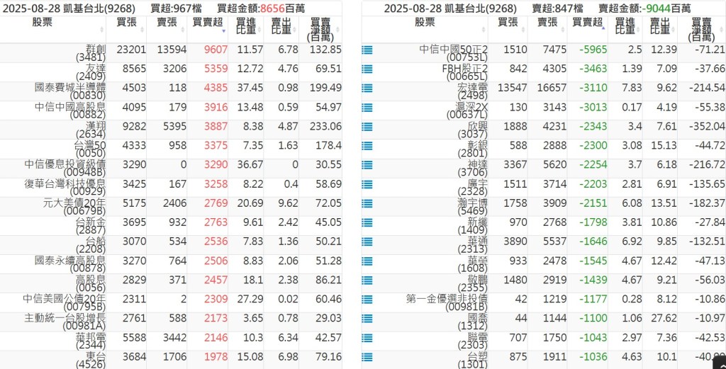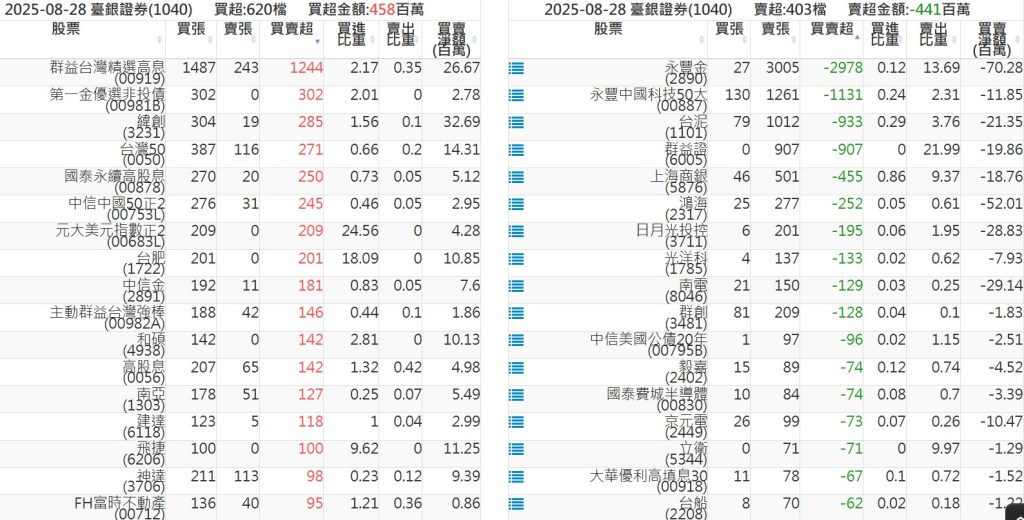 2025-0828關鍵券商買賣超 2025-08-28 股狗網小編 籌碼面每日資訊 發表留言 關鍵券商買賣超: 臺銀證券(1040): 台灣摩根士丹利(1470): 凱基台北(9268): 凱基信義(9216): 元大土城永寧(9875): 康和永和(845B) : 富邦建國(9658): 免責宣言 本網站文章所提供資訊僅供參考,並無任何推介買賣之意,投資人應自行承擔交易風險。 分享此文: 按一下即可分享至 X(在新視窗中開啟) X 按一下以分享至 Facebook(在新視窗中開啟) Facebook 喜歡 正在載入...