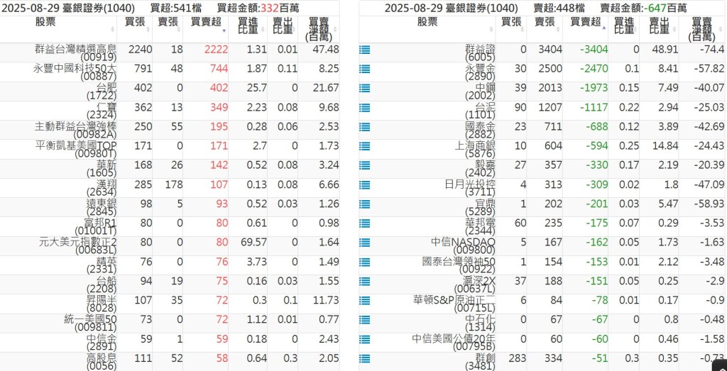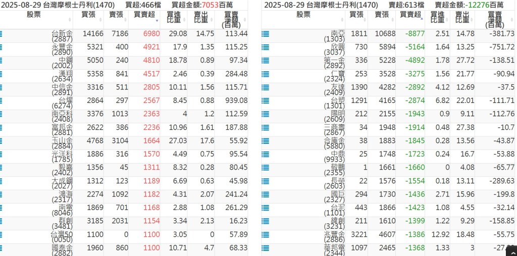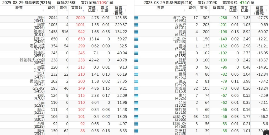 2025-0829關鍵券商買賣超 2025-08-29 股狗網小編 籌碼面每日資訊 發表留言 關鍵券商買賣超: 臺銀證券(1040): 台灣摩根士丹利(1470): 凱基台北(9268): 凱基信義(9216): 元大土城永寧(9875): 康和永和(845B) : 富邦建國(9658): 免責宣言 本網站文章所提供資訊僅供參考,並無任何推介買賣之意,投資人應自行承擔交易風險。 分享此文: 按一下即可分享至 X(在新視窗中開啟) X 按一下以分享至 Facebook(在新視窗中開啟) Facebook 喜歡 正在載入...