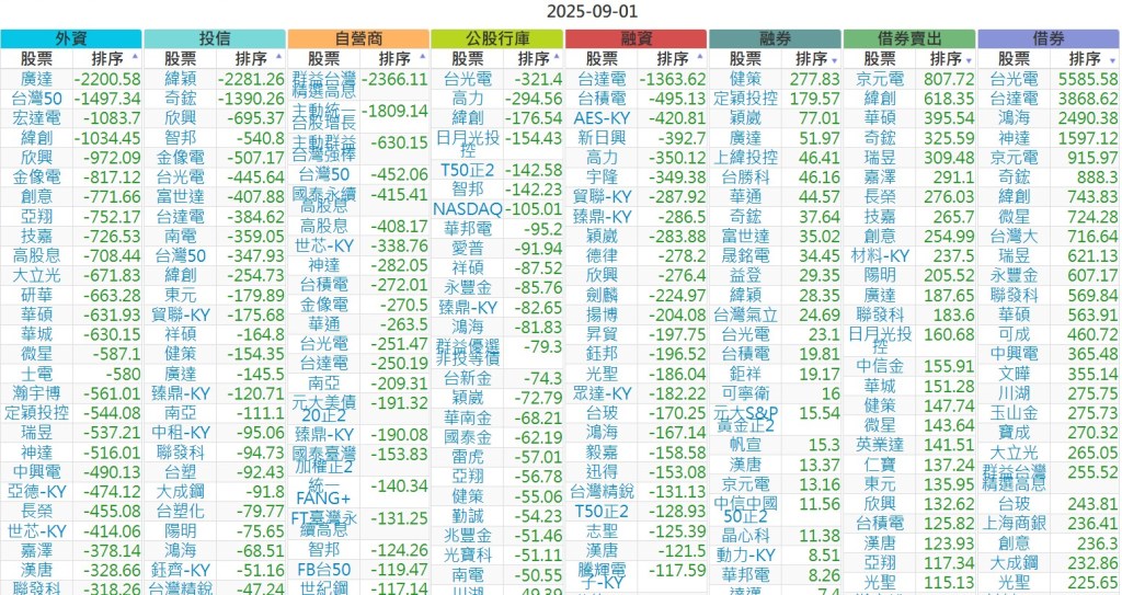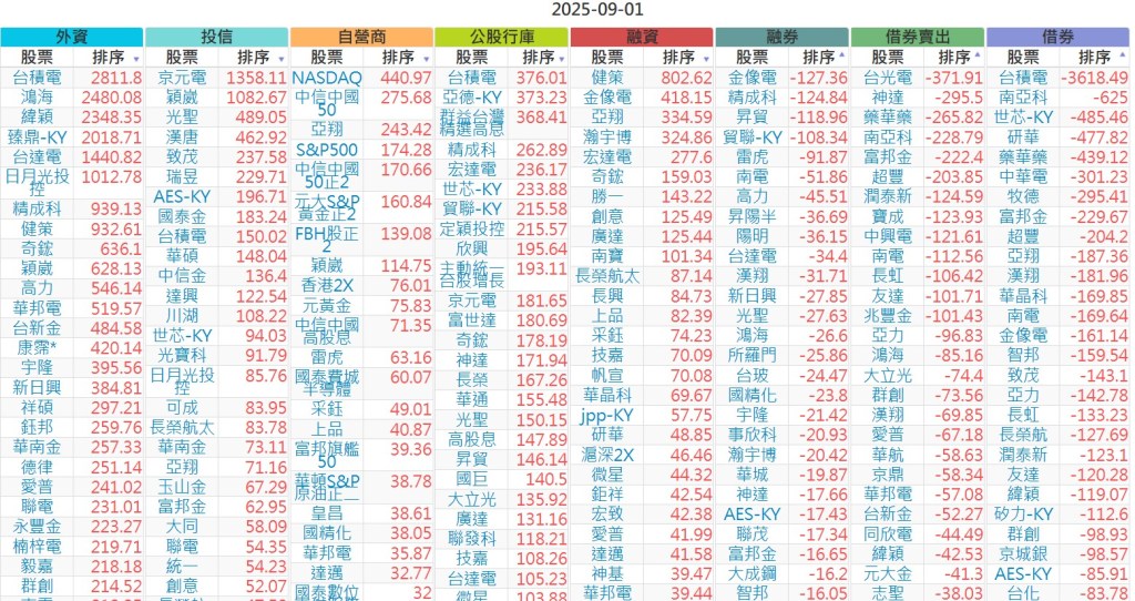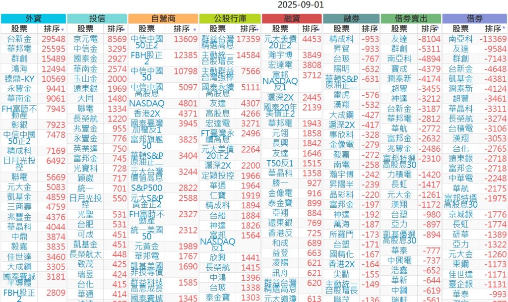 2025-0901【外資、投信】買賣超個股 2025-09-01 股狗網小編 投資誌-大盤 發表留言 上市:【外資、投信】買超(依金額) (單位:百萬) 上市:【外資、投信】賣超(依金額) (單位:百萬) 上市:【外資、投信】買超(依張數) (單位:張數) 上市:【外資、投信】賣超(依張數) (單位:張數) 免責宣言 本網站文章所提供資訊僅供參考,並無任何推介買賣之意,投資人應自行承擔交易風險。 分享此文: 按一下即可分享至 X(在新視窗中開啟) X 按一下以分享至 Facebook(在新視窗中開啟) Facebook 喜歡 正在載入...