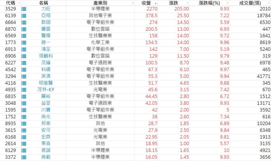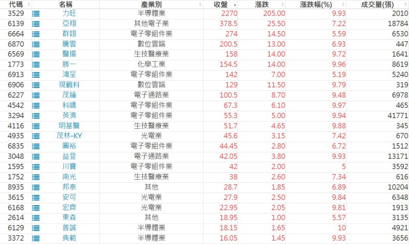 2025-0901日新高爆量上漲股 2025-09-01 股狗網小編 選股條件 發表留言 利用股狗選股的選股條件可以【挑選突破20日新高,爆量上漲起漲點股票】 1.股狗選股 https://www.stockdog.com.tw 2.選股條件: a.收盤價創20日新高 b.當日漲幅 > 2% C.成交量大於5日均量2倍 免責宣言 本網站文章所提供資訊僅供參考,並無任何推介買賣之意,投資人應自行承擔交易風險。 分享此文: 按一下即可分享至 X(在新視窗中開啟) X 按一下以分享至 Facebook(在新視窗中開啟) Facebook 喜歡 正在載入...