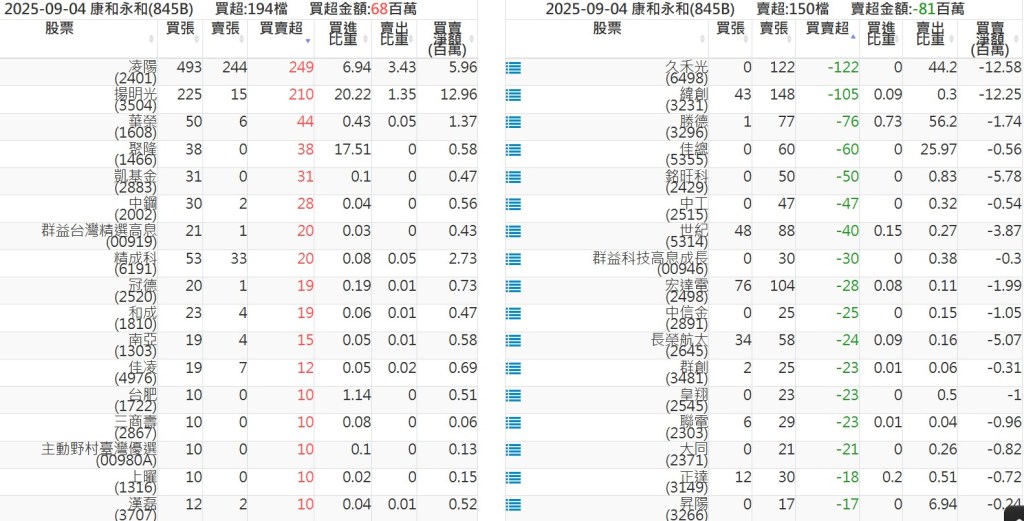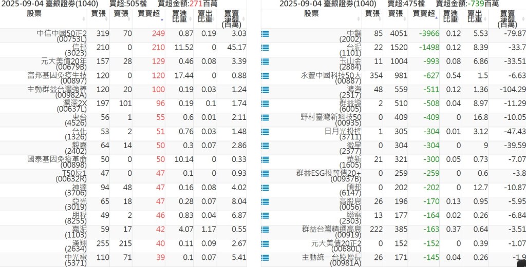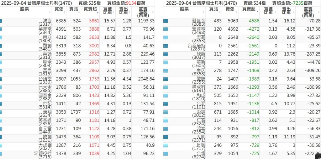 2025-0904關鍵券商買賣超 2025-09-04 股狗網小編 籌碼面每日資訊 發表留言 關鍵券商買賣超: 臺銀證券(1040): 台灣摩根士丹利(1470): 凱基台北(9268): 凱基信義(9216): 元大土城永寧(9875): 康和永和(845B) : 富邦建國(9658): 免責宣言 本網站文章所提供資訊僅供參考,並無任何推介買賣之意,投資人應自行承擔交易風險。 分享此文: 按一下即可分享至 X(在新視窗中開啟) X 按一下以分享至 Facebook(在新視窗中開啟) Facebook 喜歡 正在載入...