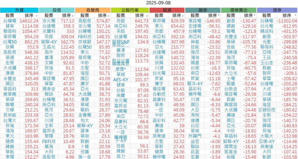 2025-0908【外資、投信】買賣超個股 2025-09-08 股狗網小編 投資誌-大盤 發表留言 上市:【外資、投信】買超(依金額) (單位:百萬) 上市:【外資、投信】賣超(依金額) (單位:百萬) 上市:【外資、投信】買超(依張數) (單位:張數) 上市:【外資、投信】賣超(依張數) (單位:張數) 免責宣言 本網站文章所提供資訊僅供參考,並無任何推介買賣之意,投資人應自行承擔交易風險。 分享此文: 按一下即可分享至 X(在新視窗中開啟) X 按一下以分享至 Facebook(在新視窗中開啟) Facebook 喜歡 正在載入...