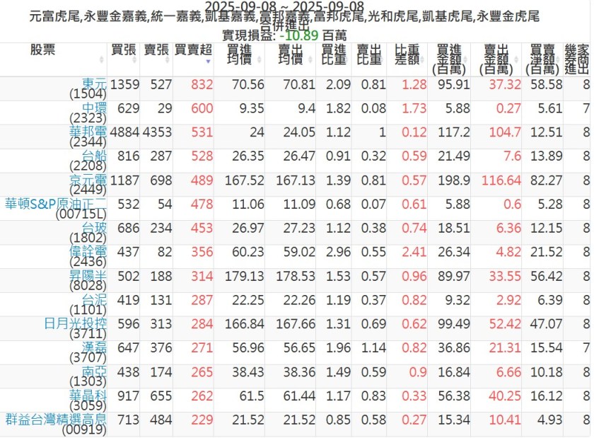 2025-0908主力買賣超個股 2025-09-08 股狗網小編 籌碼面每日資訊 發表留言 可參考下文 『如何查詢當沖、隔日沖分公司券商買賣』 主力當沖券商: 『元富虎尾』,『永豐金嘉義』,『統一嘉義』,『凱基嘉義』,『富邦嘉義』,『富邦虎尾』,『光和虎尾』,『凱基虎尾』,『永豐金虎尾』。 『當沖標的』 『買超股票』 『賣超股票』 免責宣言 本網站文章所提供資訊僅供參考,並無任何推介買賣之意,投資人應自行承擔交易風險。 分享此文: 按一下即可分享至 X(在新視窗中開啟) X 按一下以分享至 Facebook(在新視窗中開啟) Facebook 喜歡 正在載入...