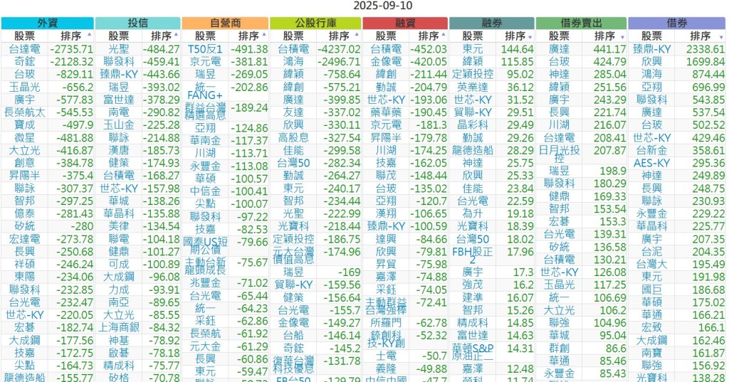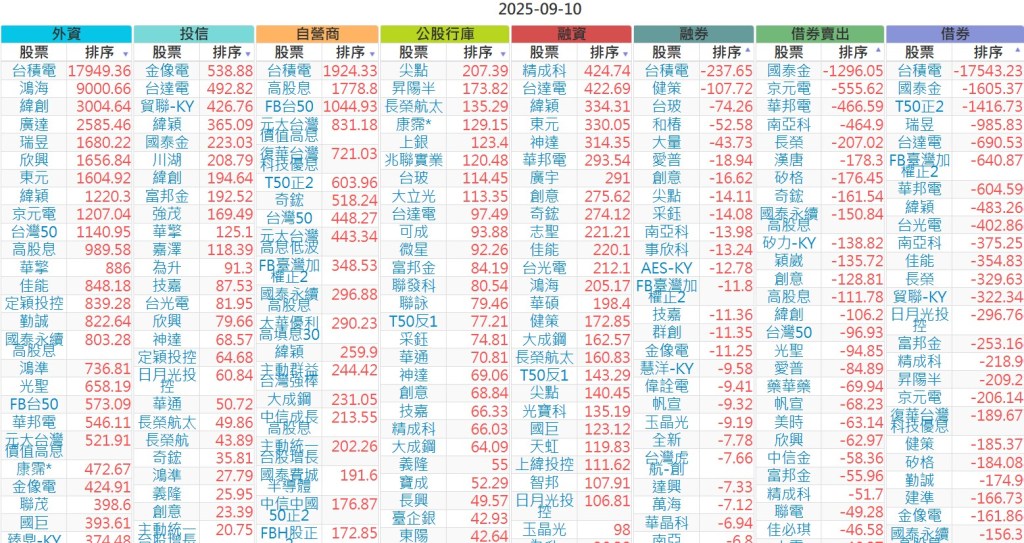2025-0910【外資、投信】買賣超個股 2025-09-10 股狗網小編 投資誌-大盤 發表留言 上市:【外資、投信】買超(依金額) (單位:百萬) 上市:【外資、投信】賣超(依金額) (單位:百萬) 上市:【外資、投信】買超(依張數) (單位:張數) 上市:【外資、投信】賣超(依張數) (單位:張數) 免責宣言 本網站文章所提供資訊僅供參考,並無任何推介買賣之意,投資人應自行承擔交易風險。 分享此文: 按一下即可分享至 X(在新視窗中開啟) X 按一下以分享至 Facebook(在新視窗中開啟) Facebook 喜歡 正在載入...