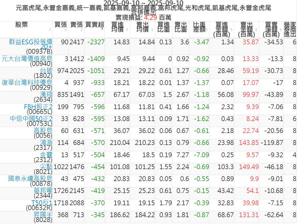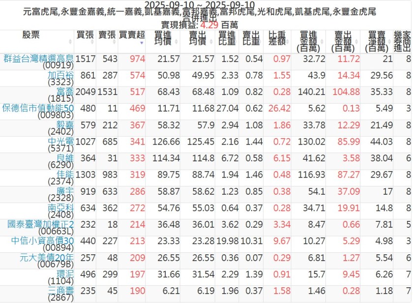 2025-0910主力買賣超個股 2025-09-10 股狗網小編 籌碼面每日資訊 發表留言 可參考下文 『如何查詢當沖、隔日沖分公司券商買賣』 主力當沖券商: 『元富虎尾』,『永豐金嘉義』,『統一嘉義』,『凱基嘉義』,『富邦嘉義』,『富邦虎尾』,『光和虎尾』,『凱基虎尾』,『永豐金虎尾』。 『當沖標的』 『買超股票』 『賣超股票』 免責宣言 本網站文章所提供資訊僅供參考,並無任何推介買賣之意,投資人應自行承擔交易風險。 分享此文: 按一下即可分享至 X(在新視窗中開啟) X 按一下以分享至 Facebook(在新視窗中開啟) Facebook 喜歡 正在載入...
