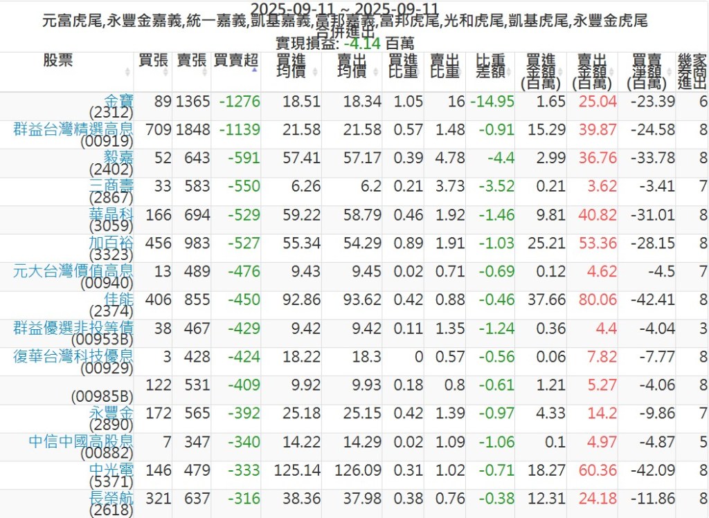 2025-0911主力買賣超個股 2025-09-11 股狗網小編 籌碼面每日資訊 發表留言 可參考下文 『如何查詢當沖、隔日沖分公司券商買賣』 主力當沖券商: 『元富虎尾』,『永豐金嘉義』,『統一嘉義』,『凱基嘉義』,『富邦嘉義』,『富邦虎尾』,『光和虎尾』,『凱基虎尾』,『永豐金虎尾』。 『當沖標的』 『買超股票』 『賣超股票』 免責宣言 本網站文章所提供資訊僅供參考,並無任何推介買賣之意,投資人應自行承擔交易風險。 分享此文: 按一下即可分享至 X(在新視窗中開啟) X 按一下以分享至 Facebook(在新視窗中開啟) Facebook 喜歡 正在載入...