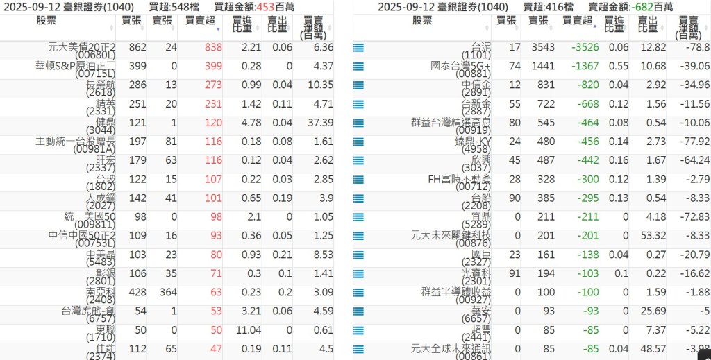 2025-0912關鍵券商買賣超 2025-09-12 股狗網小編 籌碼面每日資訊 發表留言 關鍵券商買賣超: 臺銀證券(1040): 台灣摩根士丹利(1470): 凱基台北(9268): 凱基信義(9216): 元大土城永寧(9875): 康和永和(845B) : 富邦建國(9658): 免責宣言 本網站文章所提供資訊僅供參考,並無任何推介買賣之意,投資人應自行承擔交易風險。 分享此文: 按一下即可分享至 X(在新視窗中開啟) X 按一下以分享至 Facebook(在新視窗中開啟) Facebook 喜歡 正在載入...
