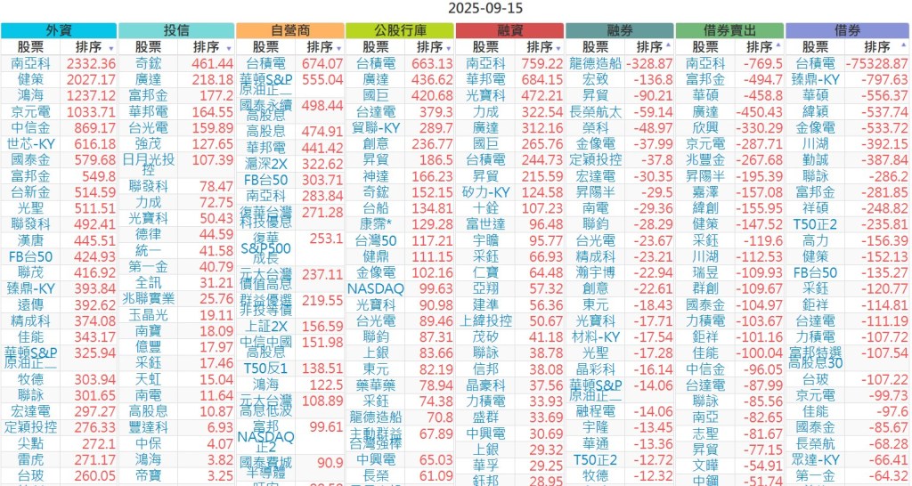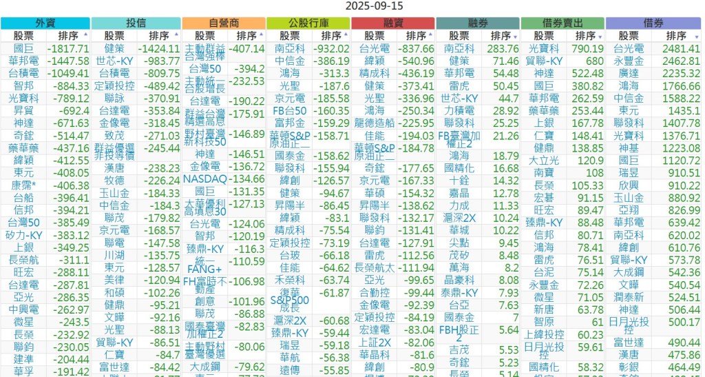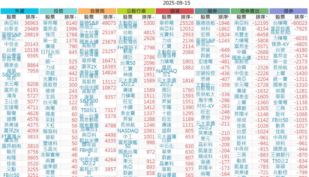 2025-0915【外資、投信】買賣超個股 2025-09-15 股狗網小編 投資誌-大盤 發表留言 上市:【外資、投信】買超(依金額) (單位:百萬) 上市:【外資、投信】賣超(依金額) (單位:百萬) 上市:【外資、投信】買超(依張數) (單位:張數) 上市:【外資、投信】賣超(依張數) (單位:張數) 免責宣言 本網站文章所提供資訊僅供參考,並無任何推介買賣之意,投資人應自行承擔交易風險。 分享此文: 按一下即可分享至 X(在新視窗中開啟) X 按一下以分享至 Facebook(在新視窗中開啟) Facebook 喜歡 正在載入...