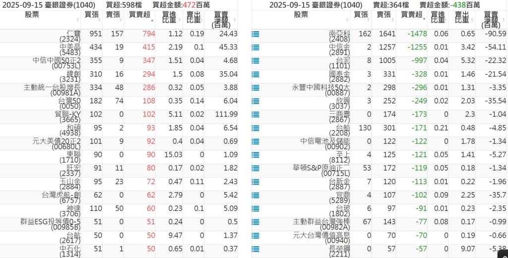 2025-0915關鍵券商買賣超 2025-09-15 股狗網小編 籌碼面每日資訊 發表留言 關鍵券商買賣超: 臺銀證券(1040): 台灣摩根士丹利(1470): 凱基台北(9268): 凱基信義(9216): 元大土城永寧(9875): 康和永和(845B) : 富邦建國(9658): 免責宣言 本網站文章所提供資訊僅供參考,並無任何推介買賣之意,投資人應自行承擔交易風險。 分享此文: 按一下即可分享至 X(在新視窗中開啟) X 按一下以分享至 Facebook(在新視窗中開啟) Facebook 喜歡 正在載入...
