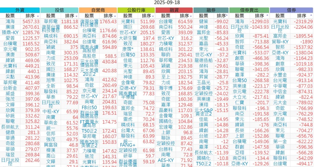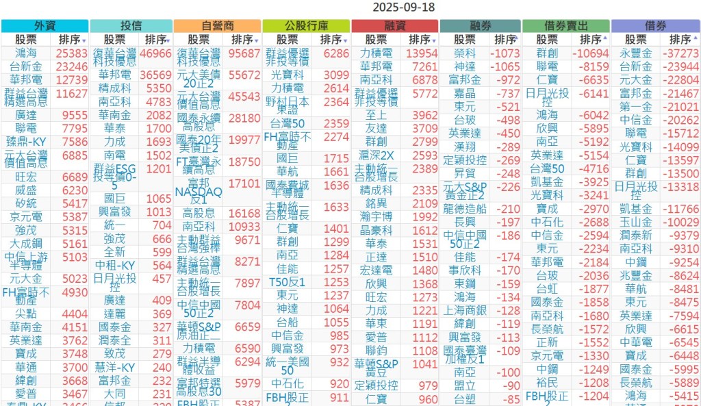 2025-0918【外資、投信】買賣超個股 2025-09-18 股狗網小編 投資誌-大盤 發表留言 上市:【外資、投信】買超(依金額) (單位:百萬) 上市:【外資、投信】賣超(依金額) (單位:百萬) 上市:【外資、投信】買超(依張數) (單位:張數) 上市:【外資、投信】賣超(依張數) (單位:張數) 免責宣言 本網站文章所提供資訊僅供參考,並無任何推介買賣之意,投資人應自行承擔交易風險。 分享此文: 按一下即可分享至 X(在新視窗中開啟) X 按一下以分享至 Facebook(在新視窗中開啟) Facebook 喜歡 正在載入...