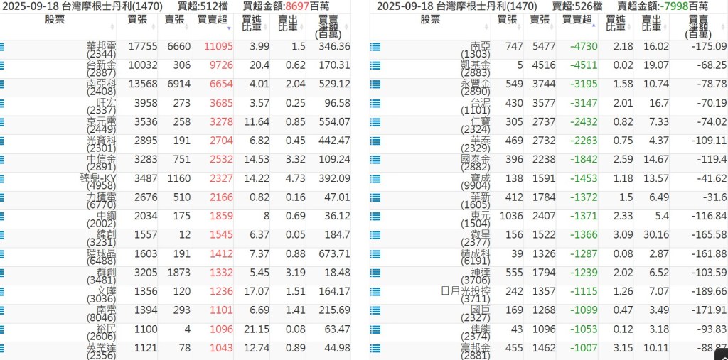 2025-0918關鍵券商買賣超 2025-09-18 股狗網小編 籌碼面每日資訊 發表留言 關鍵券商買賣超: 臺銀證券(1040): 台灣摩根士丹利(1470): 凱基台北(9268): 凱基信義(9216): 元大土城永寧(9875): 康和永和(845B) : 富邦建國(9658): 免責宣言 本網站文章所提供資訊僅供參考,並無任何推介買賣之意,投資人應自行承擔交易風險。 分享此文: 按一下即可分享至 X(在新視窗中開啟) X 按一下以分享至 Facebook(在新視窗中開啟) Facebook 喜歡 正在載入...