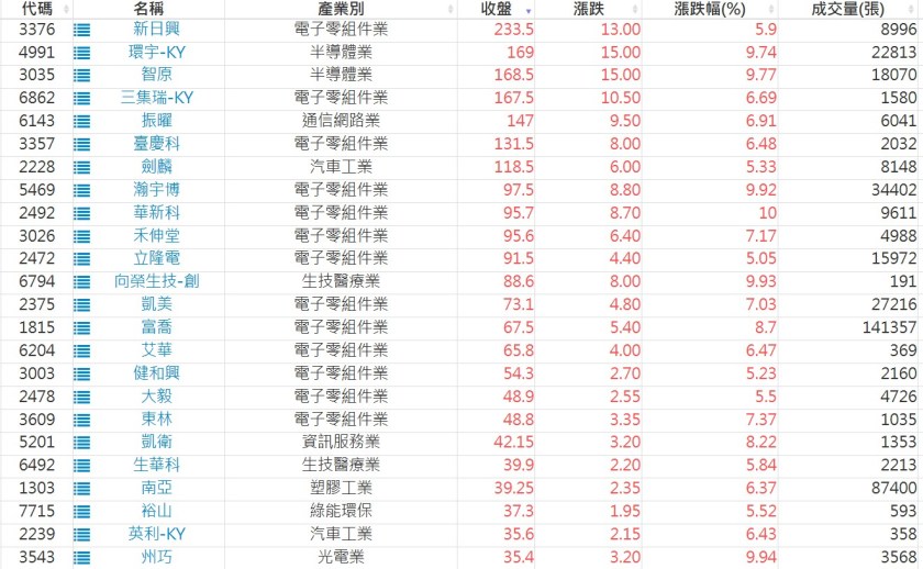 2025-0919日新高爆量上漲股 2025-09-19 股狗網小編 選股條件 發表留言 利用股狗選股的選股條件可以【挑選突破20日新高,爆量上漲起漲點股票】 1.股狗選股 https://www.stockdog.com.tw 2.選股條件: a.收盤價創20日新高 b.當日漲幅 > 2% C.成交量大於5日均量2倍 免責宣言 本網站文章所提供資訊僅供參考,並無任何推介買賣之意,投資人應自行承擔交易風險。 分享此文: 按一下即可分享至 X(在新視窗中開啟) X 按一下以分享至 Facebook(在新視窗中開啟) Facebook 喜歡 正在載入...