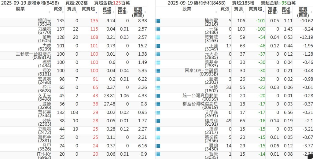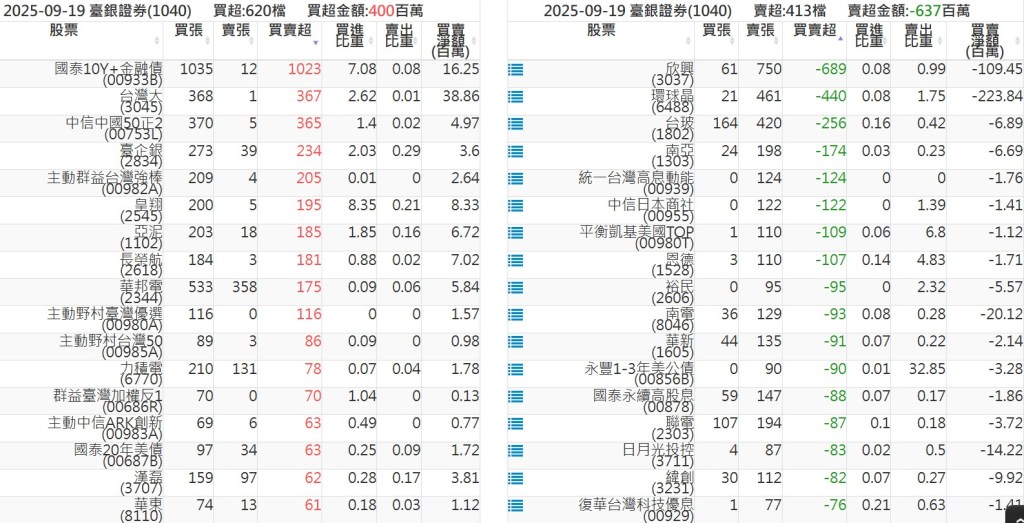 2025-0919關鍵券商買賣超 2025-09-19 股狗網小編 籌碼面每日資訊 發表留言 關鍵券商買賣超: 臺銀證券(1040): 台灣摩根士丹利(1470): 凱基台北(9268): 凱基信義(9216): 元大土城永寧(9875): 康和永和(845B) : 富邦建國(9658): 免責宣言 本網站文章所提供資訊僅供參考,並無任何推介買賣之意,投資人應自行承擔交易風險。 分享此文: 按一下即可分享至 X(在新視窗中開啟) X 按一下以分享至 Facebook(在新視窗中開啟) Facebook 喜歡 正在載入...