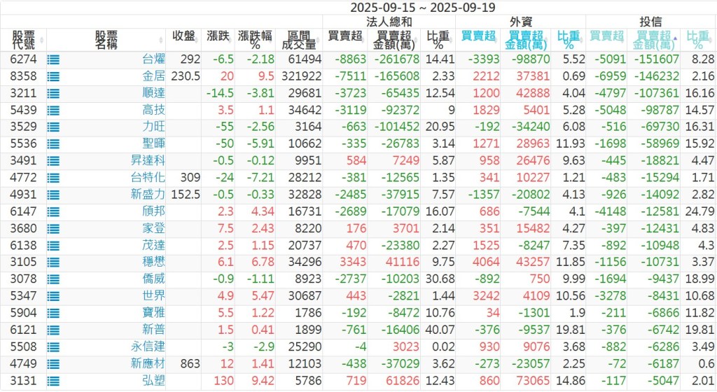 2025/09/15~2025/09/19近5日【投信】買賣超個股 2025-09-21 股狗網小編 投資誌-大盤 發表留言 【上市投信買超個股】(以金額排行,單位:萬) 【上市投信賣超個股】(以金額排行,單位:萬) 【上櫃投信買超個股】(以金額排行,單位:萬) 【上櫃投信賣超個股】(以金額排行,單位:萬) 免責宣言 本網站文章所提供資訊僅供參考,並無任何推介買賣之意,投資人應自行承擔交易風險。 分享此文: 按一下即可分享至 X(在新視窗中開啟) X 按一下以分享至 Facebook(在新視窗中開啟) Facebook 喜歡 正在載入...