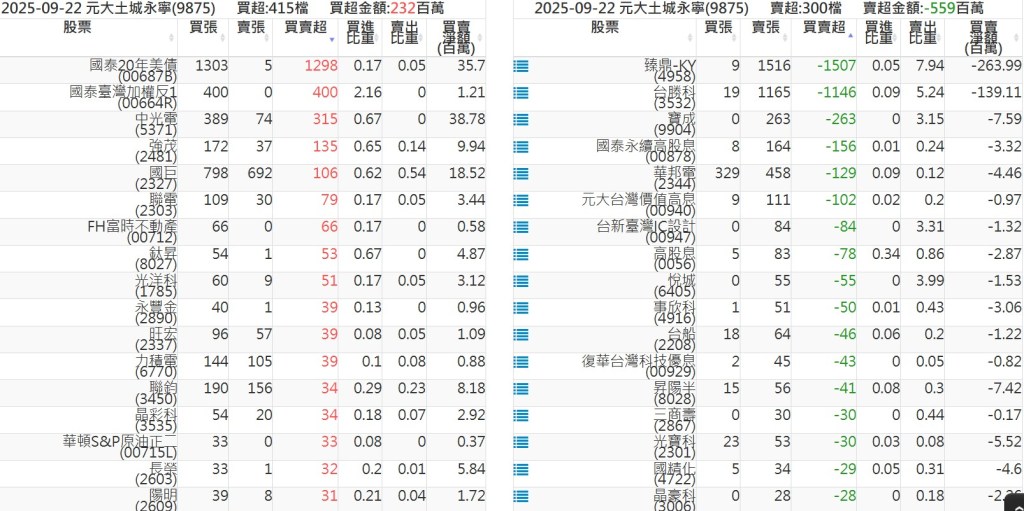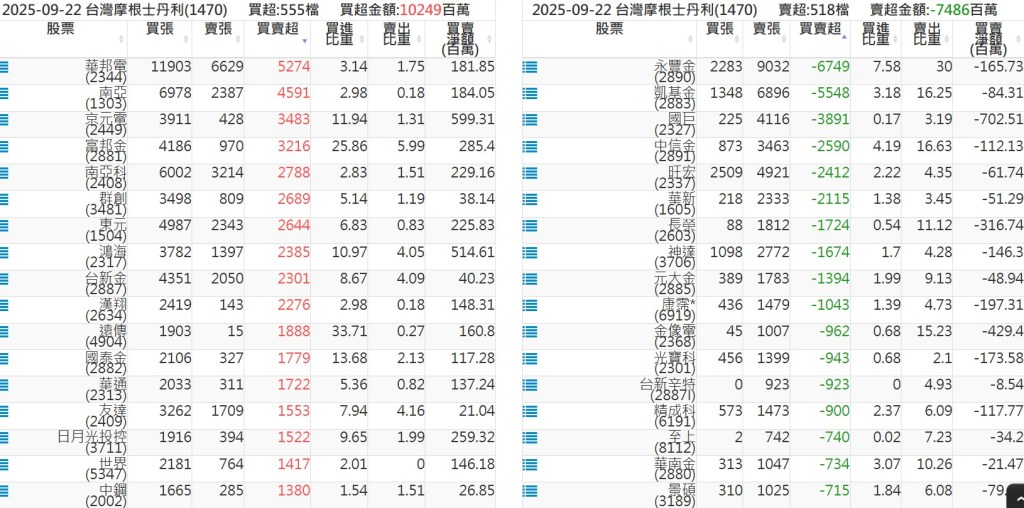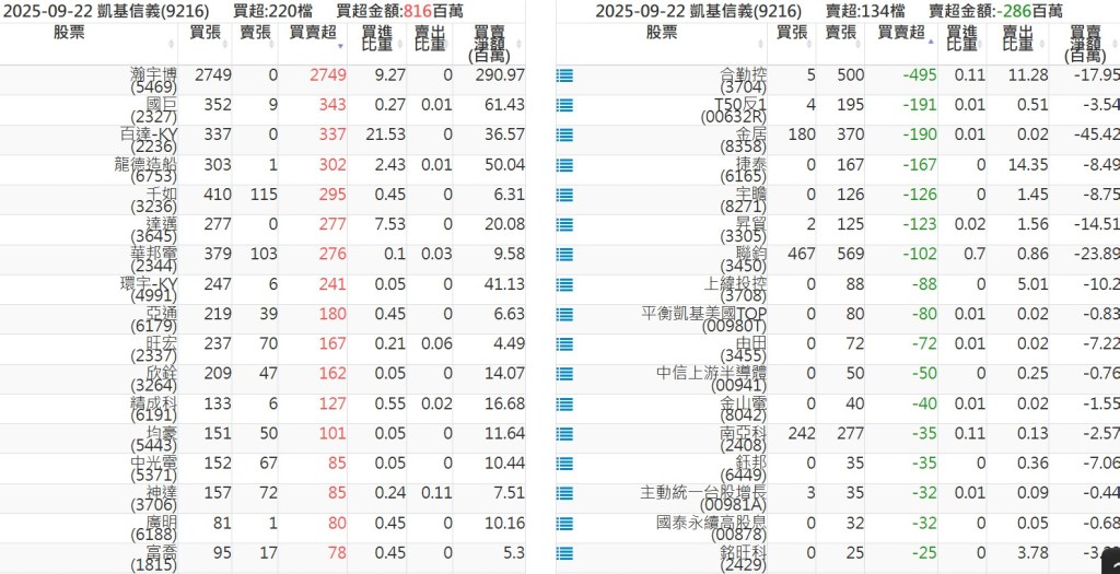 2025-0922關鍵券商買賣超 2025-09-23 股狗網小編 籌碼面每日資訊 發表留言 關鍵券商買賣超: 臺銀證券(1040): 台灣摩根士丹利(1470): 凱基台北(9268): 凱基信義(9216): 元大土城永寧(9875): 康和永和(845B) : 富邦建國(9658): 免責宣言 本網站文章所提供資訊僅供參考,並無任何推介買賣之意,投資人應自行承擔交易風險。 分享此文: 按一下即可分享至 X(在新視窗中開啟) X 按一下以分享至 Facebook(在新視窗中開啟) Facebook 喜歡 正在載入...