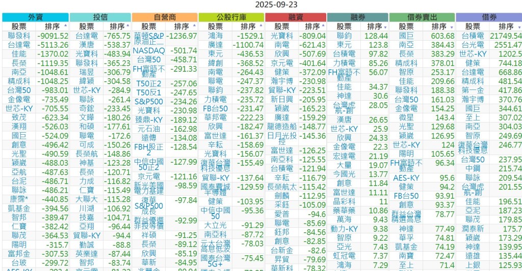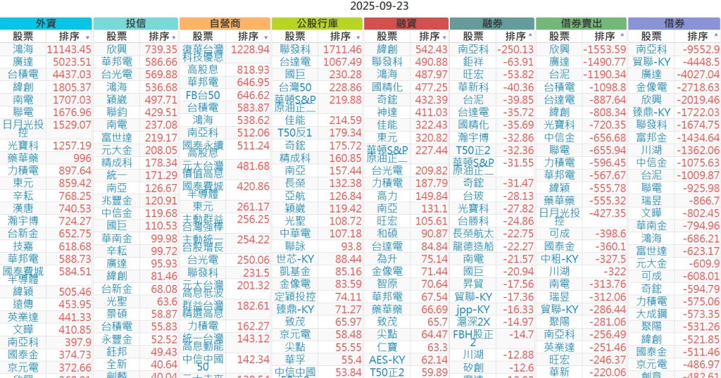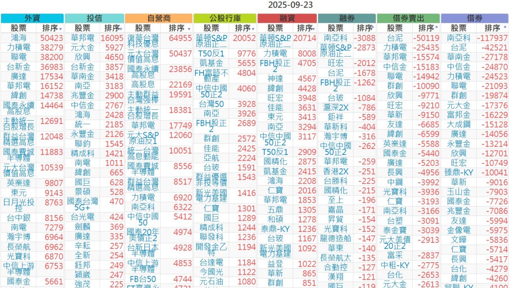 2025-0923【外資、投信】買賣超個股 2025-09-23 股狗網小編 投資誌-大盤 發表留言 上市:【外資、投信】買超(依金額) (單位:百萬) 上市:【外資、投信】賣超(依金額) (單位:百萬) 上市:【外資、投信】買超(依張數) (單位:張數) 上市:【外資、投信】賣超(依張數) (單位:張數) 免責宣言 本網站文章所提供資訊僅供參考,並無任何推介買賣之意,投資人應自行承擔交易風險。 分享此文: 按一下即可分享至 X(在新視窗中開啟) X 按一下以分享至 Facebook(在新視窗中開啟) Facebook 喜歡 正在載入...