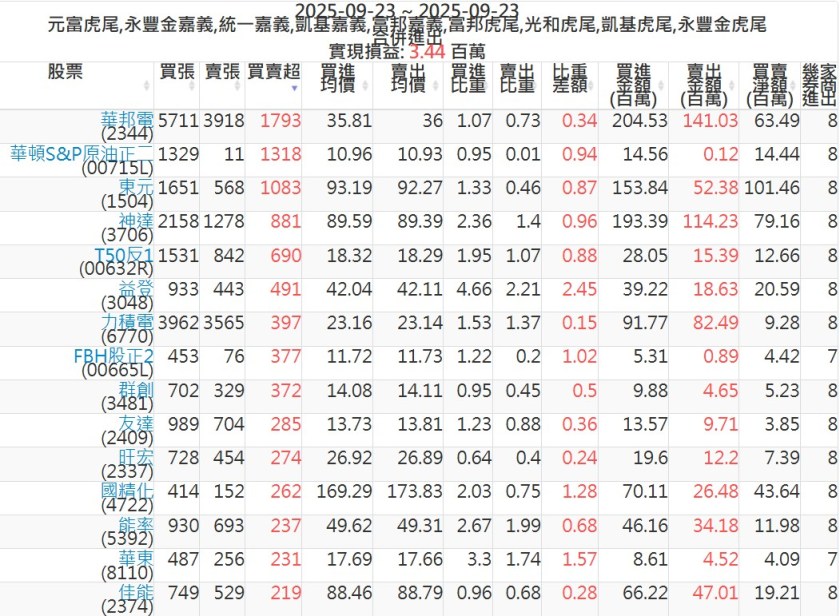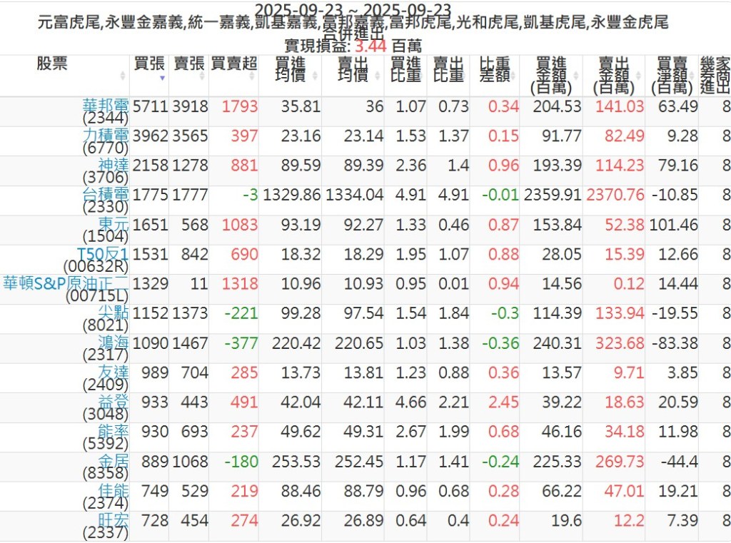 2025-0923主力買賣超個股 2025-09-23 股狗網小編 籌碼面每日資訊 發表留言 可參考下文 『如何查詢當沖、隔日沖分公司券商買賣』 主力當沖券商: 『元富虎尾』,『永豐金嘉義』,『統一嘉義』,『凱基嘉義』,『富邦嘉義』,『富邦虎尾』,『光和虎尾』,『凱基虎尾』,『永豐金虎尾』。 『當沖標的』 『買超股票』 『賣超股票』 免責宣言 本網站文章所提供資訊僅供參考,並無任何推介買賣之意,投資人應自行承擔交易風險。 分享此文: 按一下即可分享至 X(在新視窗中開啟) X 按一下以分享至 Facebook(在新視窗中開啟) Facebook 喜歡 正在載入...