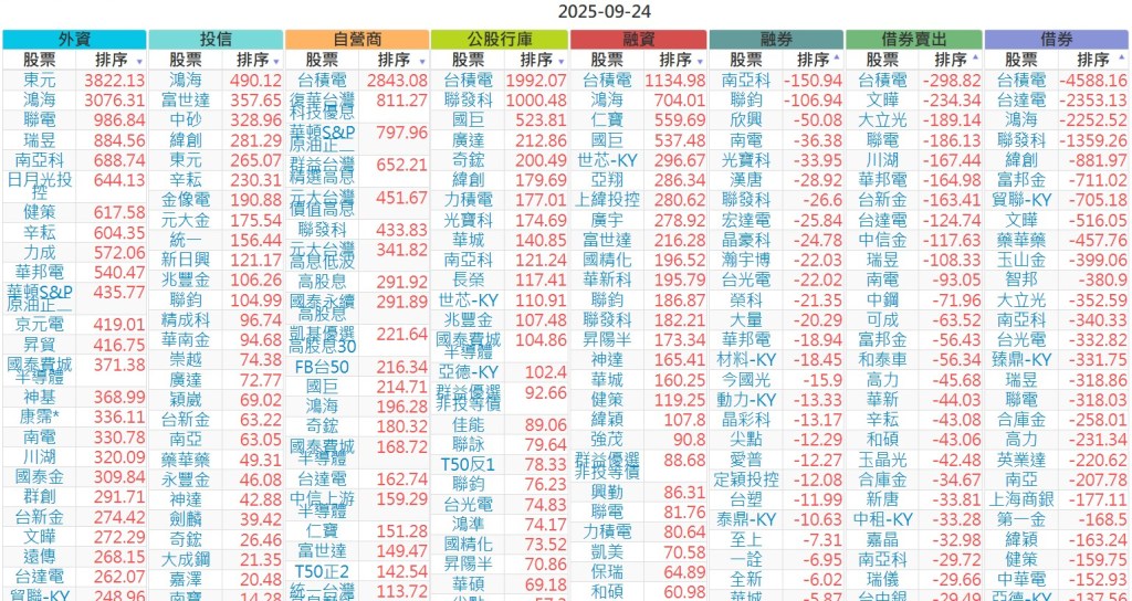 2025-0924【外資、投信】買賣超個股 2025-09-25 股狗網小編 投資誌-大盤 發表留言 上市:【外資、投信】買超(依金額) (單位:百萬) 上市:【外資、投信】賣超(依金額) (單位:百萬) 上市:【外資、投信】買超(依張數) (單位:張數) 上市:【外資、投信】賣超(依張數) (單位:張數) 免責宣言 本網站文章所提供資訊僅供參考,並無任何推介買賣之意,投資人應自行承擔交易風險。 分享此文: 按一下即可分享至 X(在新視窗中開啟) X 按一下以分享至 Facebook(在新視窗中開啟) Facebook 喜歡 正在載入...