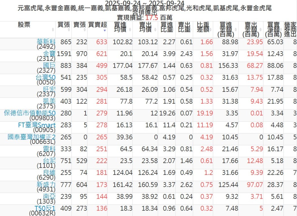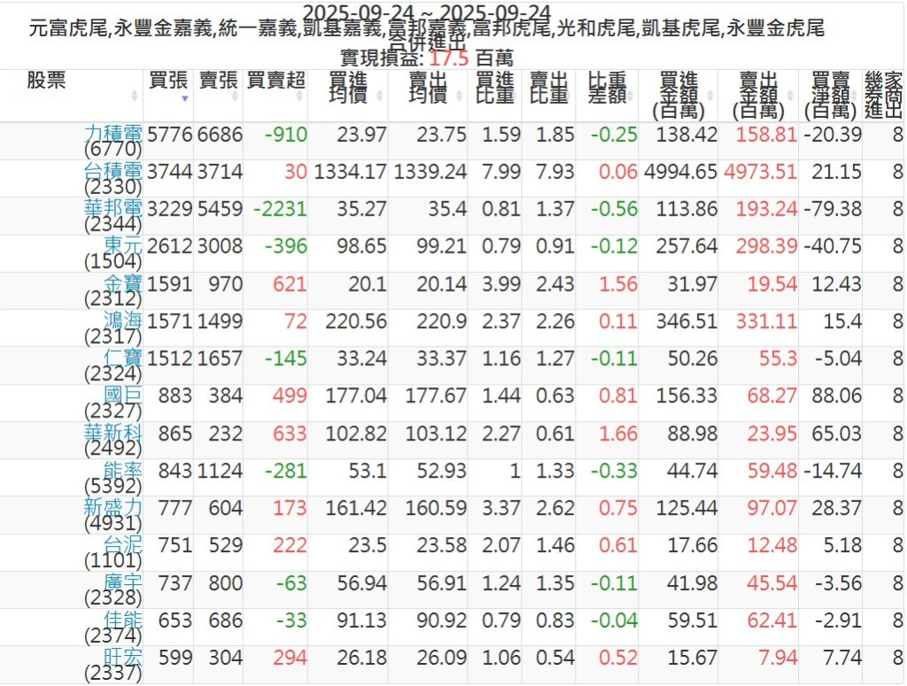 2025-0924主力買賣超個股 2025-09-25 股狗網小編 籌碼面每日資訊 發表留言 可參考下文 『如何查詢當沖、隔日沖分公司券商買賣』 主力當沖券商: 『元富虎尾』,『永豐金嘉義』,『統一嘉義』,『凱基嘉義』,『富邦嘉義』,『富邦虎尾』,『光和虎尾』,『凱基虎尾』,『永豐金虎尾』。 『當沖標的』 『買超股票』 『賣超股票』 免責宣言 本網站文章所提供資訊僅供參考,並無任何推介買賣之意,投資人應自行承擔交易風險。 分享此文: 按一下即可分享至 X(在新視窗中開啟) X 按一下以分享至 Facebook(在新視窗中開啟) Facebook 喜歡 正在載入...