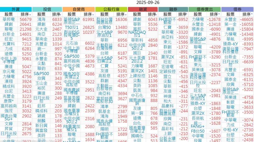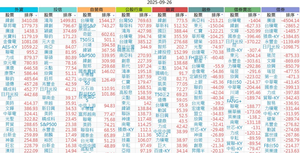 2025-0926【外資、投信】買賣超個股 2025-09-26 股狗網小編 投資誌-大盤 發表留言 上市:【外資、投信】買超(依金額) (單位:百萬) 上市:【外資、投信】賣超(依金額) (單位:百萬) 上市:【外資、投信】買超(依張數) (單位:張數) 上市:【外資、投信】賣超(依張數) (單位:張數) 免責宣言 本網站文章所提供資訊僅供參考,並無任何推介買賣之意,投資人應自行承擔交易風險。 分享此文: 按一下即可分享至 X(在新視窗中開啟) X 按一下以分享至 Facebook(在新視窗中開啟) Facebook 喜歡 正在載入...