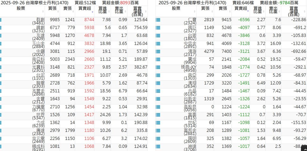 2025-0926關鍵券商買賣超 2025-09-26 股狗網小編 籌碼面每日資訊 發表留言 關鍵券商買賣超: 臺銀證券(1040): 台灣摩根士丹利(1470): 凱基台北(9268): 凱基信義(9216): 元大土城永寧(9875): 康和永和(845B) : 富邦建國(9658): 免責宣言 本網站文章所提供資訊僅供參考,並無任何推介買賣之意,投資人應自行承擔交易風險。 分享此文: 按一下即可分享至 X(在新視窗中開啟) X 按一下以分享至 Facebook(在新視窗中開啟) Facebook 喜歡 正在載入...
