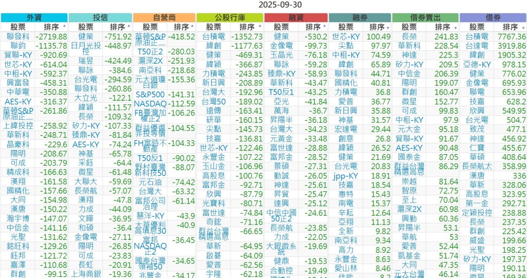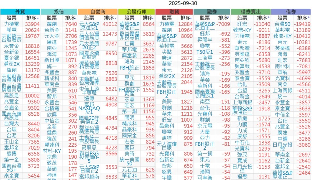2025-0930【外資、投信】買賣超個股 2025-09-30 股狗網小編 投資誌-大盤 發表留言 上市:【外資、投信】買超(依金額) (單位:百萬) 上市:【外資、投信】賣超(依金額) (單位:百萬) 上市:【外資、投信】買超(依張數) (單位:張數) 上市:【外資、投信】賣超(依張數) (單位:張數) 免責宣言 本網站文章所提供資訊僅供參考,並無任何推介買賣之意,投資人應自行承擔交易風險。 分享此文: 按一下即可分享至 X(在新視窗中開啟) X 按一下以分享至 Facebook(在新視窗中開啟) Facebook 喜歡 正在載入...