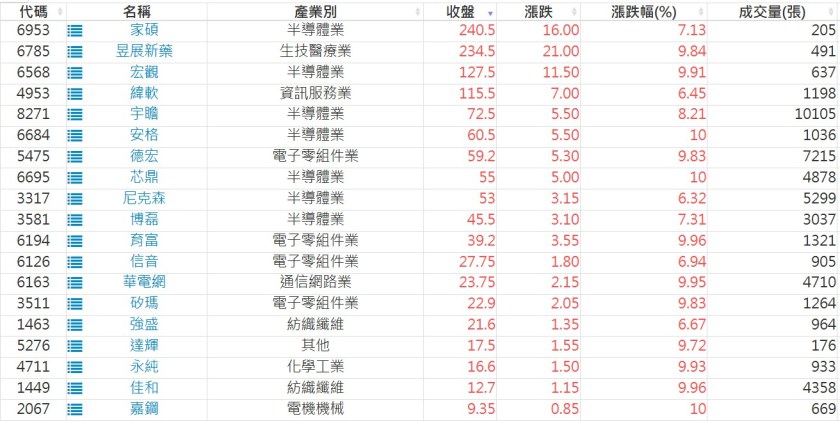 2025-0930日新高爆量上漲股 2025-09-30 股狗網小編 選股條件 發表留言 利用股狗選股的選股條件可以【挑選突破20日新高,爆量上漲起漲點股票】 1.股狗選股 https://www.stockdog.com.tw 2.選股條件: a.收盤價創20日新高 b.當日漲幅 > 2% C.成交量大於5日均量2倍 免責宣言 本網站文章所提供資訊僅供參考,並無任何推介買賣之意,投資人應自行承擔交易風險。 分享此文: 按一下即可分享至 X(在新視窗中開啟) X 按一下以分享至 Facebook(在新視窗中開啟) Facebook 喜歡 正在載入...