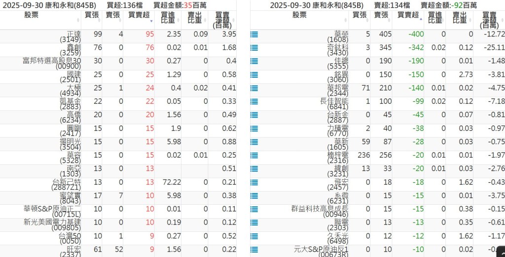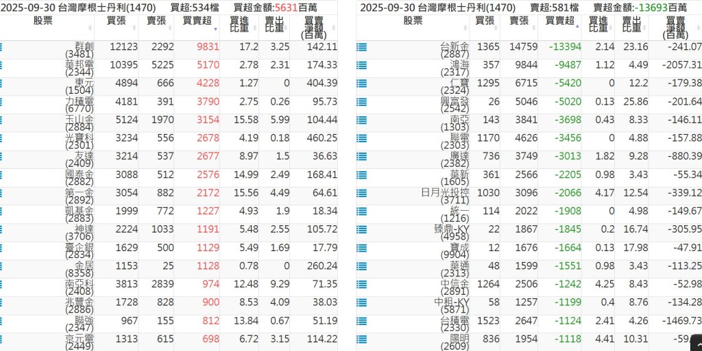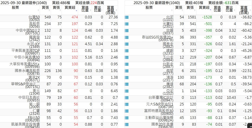 2025-0930關鍵券商買賣超 2025-09-30 股狗網小編 籌碼面每日資訊 發表留言 關鍵券商買賣超: 臺銀證券(1040): 台灣摩根士丹利(1470): 凱基台北(9268): 凱基信義(9216): 元大土城永寧(9875): 康和永和(845B) : 富邦建國(9658): 免責宣言 本網站文章所提供資訊僅供參考,並無任何推介買賣之意,投資人應自行承擔交易風險。 分享此文: 按一下即可分享至 X(在新視窗中開啟) X 按一下以分享至 Facebook(在新視窗中開啟) Facebook 喜歡 正在載入...