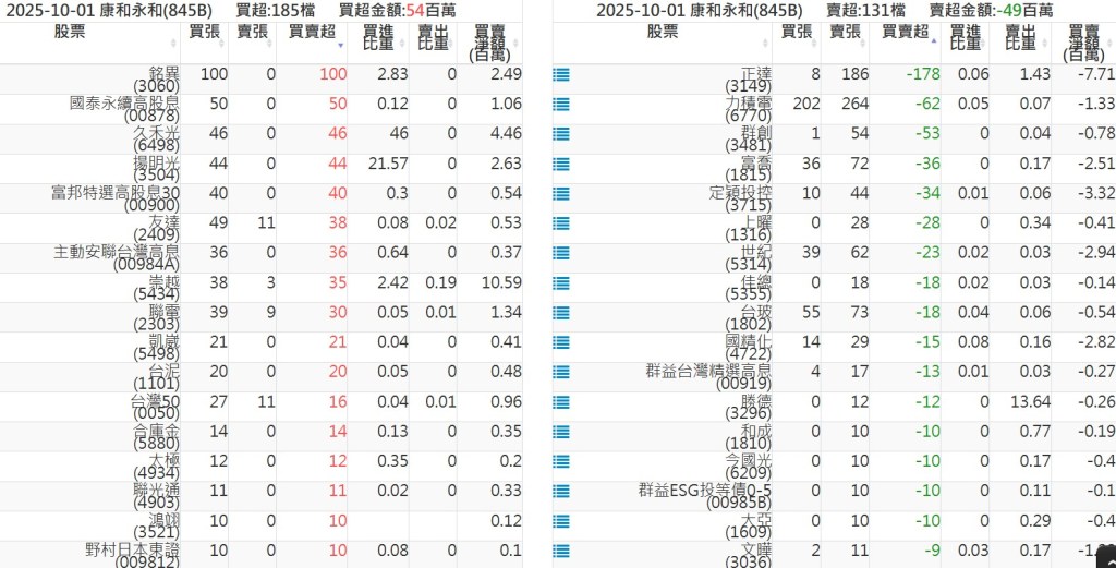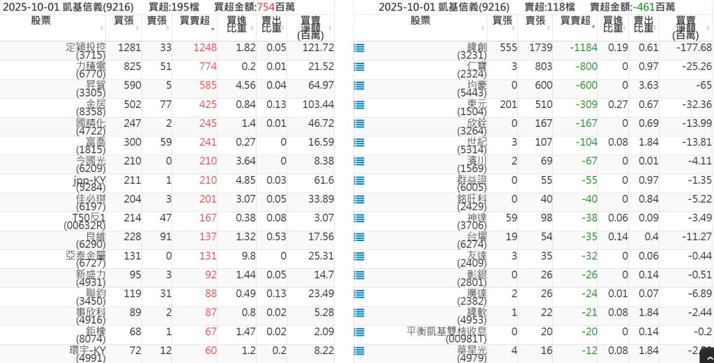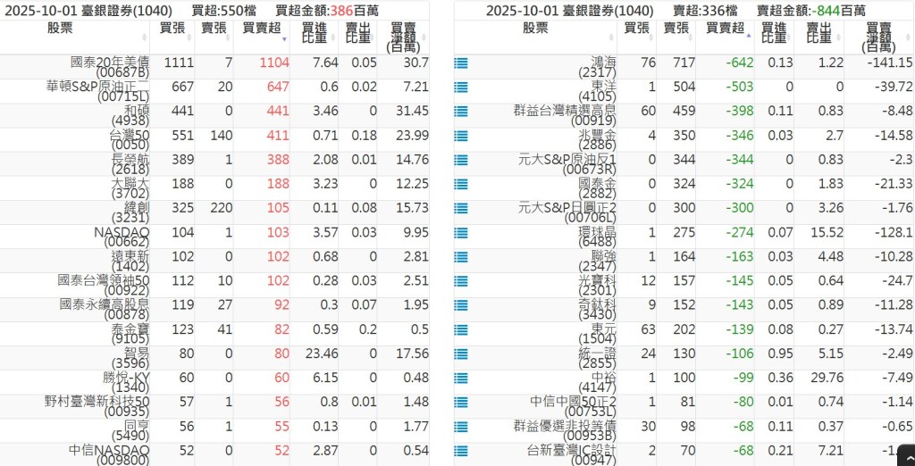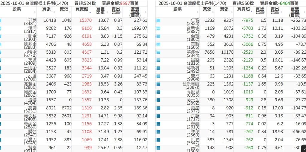 2025-1001關鍵券商買賣超 2025-10-02 股狗網小編 籌碼面每日資訊 發表留言 關鍵券商買賣超: 臺銀證券(1040): 台灣摩根士丹利(1470): 凱基台北(9268): 凱基信義(9216): 元大土城永寧(9875): 康和永和(845B) : 富邦建國(9658): 免責宣言 本網站文章所提供資訊僅供參考,並無任何推介買賣之意,投資人應自行承擔交易風險。 分享此文: 按一下即可分享至 X(在新視窗中開啟) X 按一下以分享至 Facebook(在新視窗中開啟) Facebook 喜歡 正在載入...