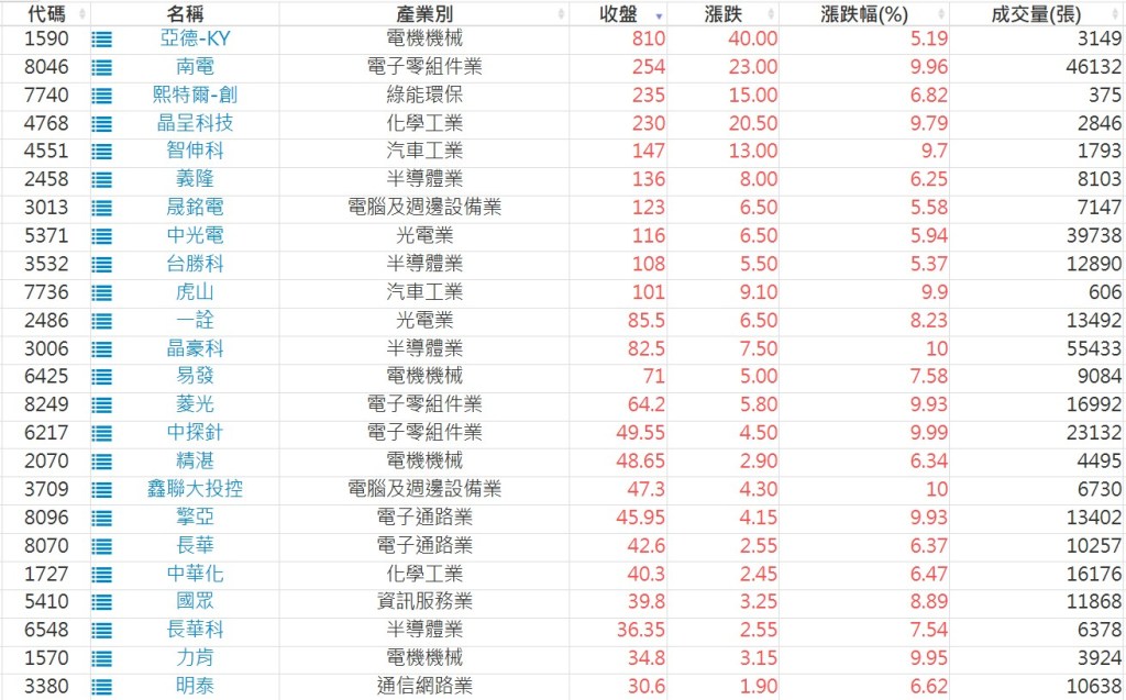 2025-1003日新高爆量上漲股 2025-10-03 股狗網小編 選股條件 發表留言 利用股狗選股的選股條件可以【挑選突破20日新高,爆量上漲起漲點股票】 1.股狗選股 https://www.stockdog.com.tw 2.選股條件: a.收盤價創20日新高 b.當日漲幅 > 2% C.成交量大於5日均量2倍 免責宣言 本網站文章所提供資訊僅供參考,並無任何推介買賣之意,投資人應自行承擔交易風險。 分享此文: 按一下即可分享至 X(在新視窗中開啟) X 按一下以分享至 Facebook(在新視窗中開啟) Facebook 喜歡 正在載入...