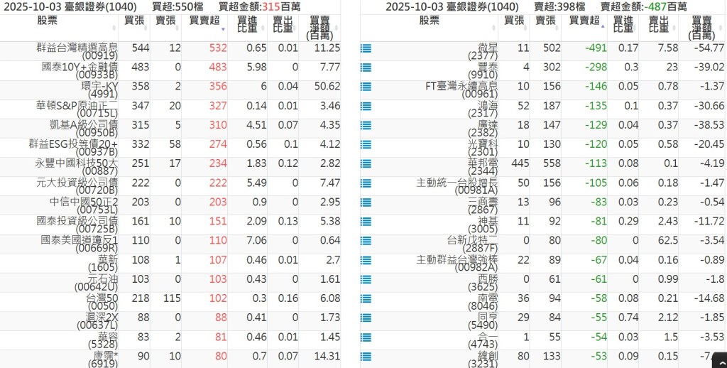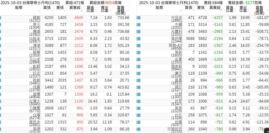 2025-1003關鍵券商買賣超 2025-10-03 股狗網小編 籌碼面每日資訊 發表留言 關鍵券商買賣超: 臺銀證券(1040): 台灣摩根士丹利(1470): 凱基台北(9268): 凱基信義(9216): 元大土城永寧(9875): 康和永和(845B) : 富邦建國(9658): 免責宣言 本網站文章所提供資訊僅供參考,並無任何推介買賣之意,投資人應自行承擔交易風險。 分享此文: 按一下即可分享至 X(在新視窗中開啟) X 按一下以分享至 Facebook(在新視窗中開啟) Facebook 喜歡 正在載入...